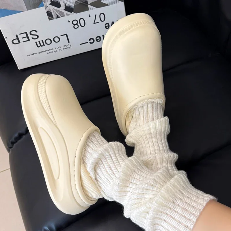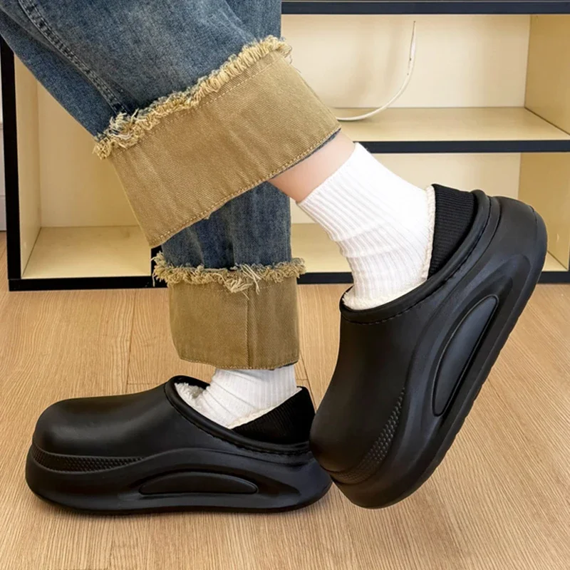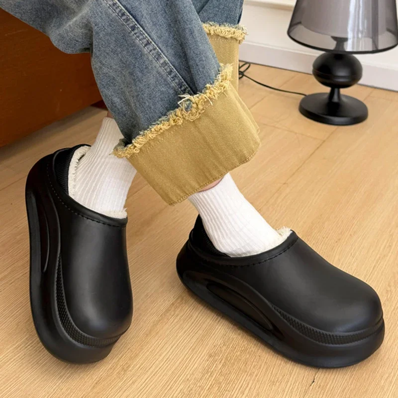 للجنسين مغلق اصبع القدم الدافئة أفخم إيفا النعال شتاء 2025 سميكة وحيد مقاوم للماء داخلي وخارجي قباقيب أحذية امرأة رقيق النعال