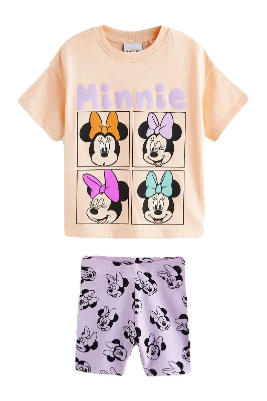 لطيف فتاة ميني طباعة الملابس مجموعة الربيع والخريف قصيرة الأكمام + السراويل ملابس الأطفال ملابس الأطفال غير رسمية