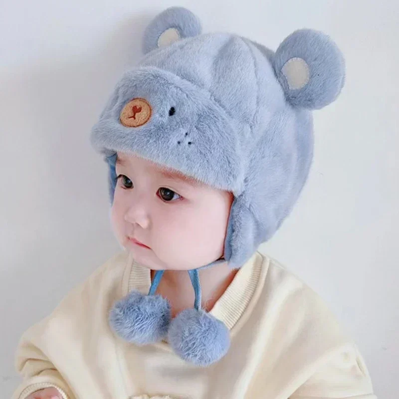لطيف شتاء دافئ الاطفال فتاة بنين الطفل القبعات الصوف الصوف هيمينغ قبعات مع الكرة الصلبة الصوف سدادات حماية الأذن القبعات لينة الوليد بونيه
