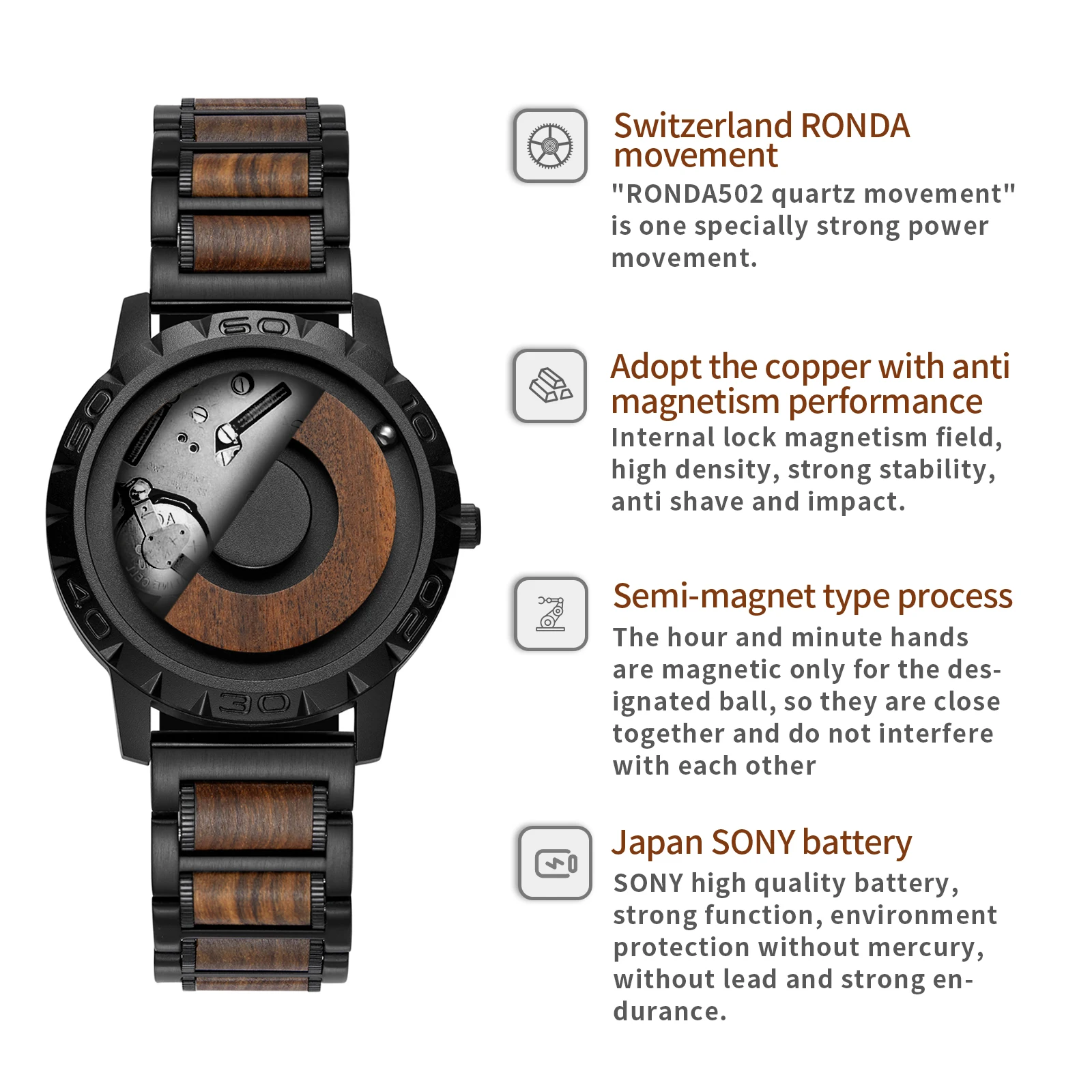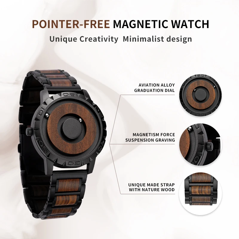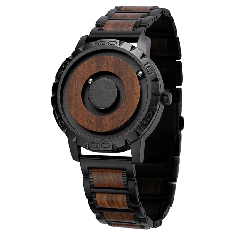 معدن الخشب ساعة للرجال الفولاذ المقاوم للصدأ رجالي كوارتز ساعة اليد المغناطيسي مؤشر رجل الطلب ا غير عادية الرجال ساعة جديدة
