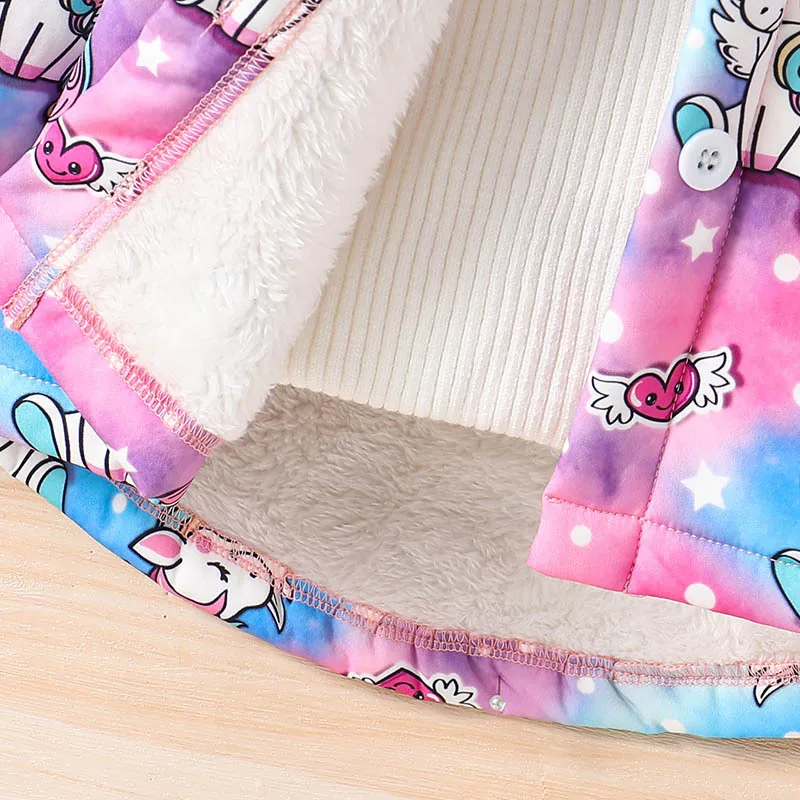 معطف صوف للفتيات للخريف والشتاء مع قبعة مطبوعة ملابس خارجية صغيرة متوسطة الحجم للأطفال
