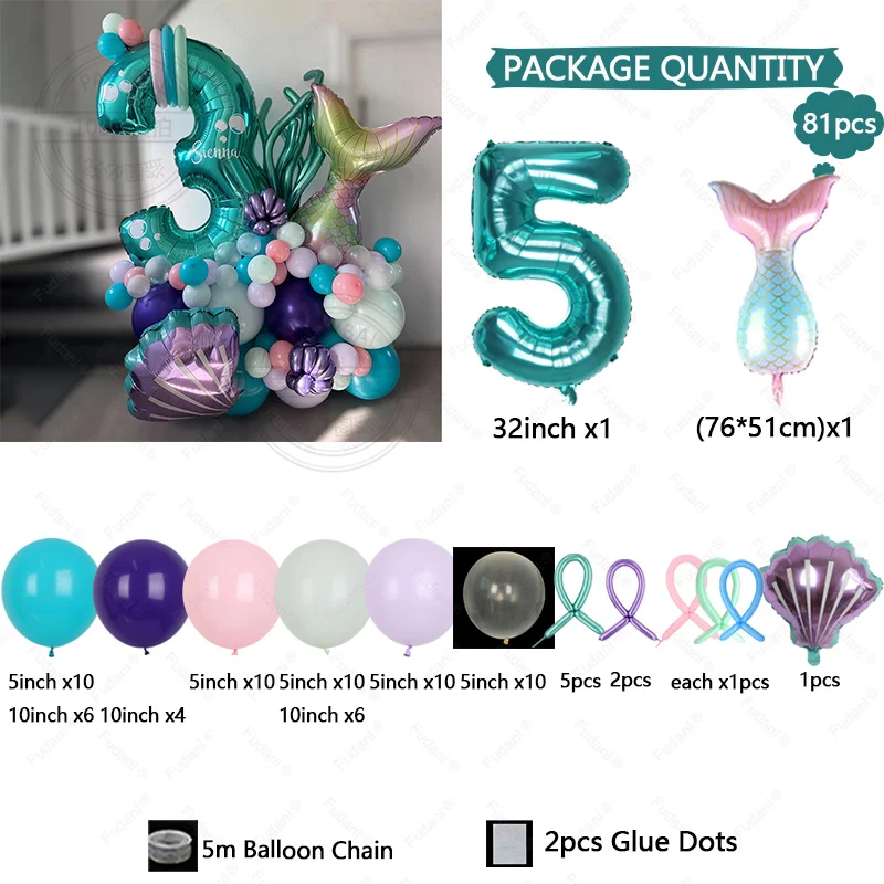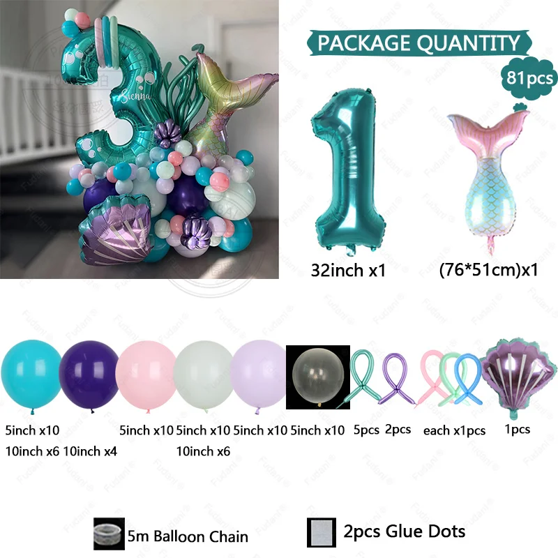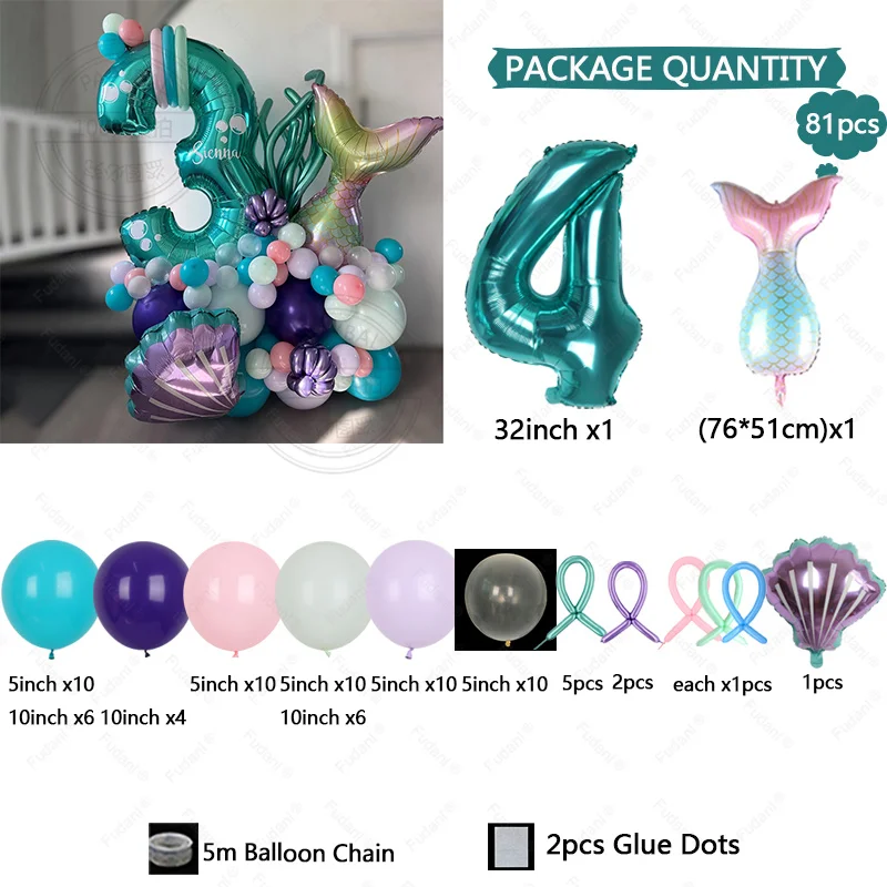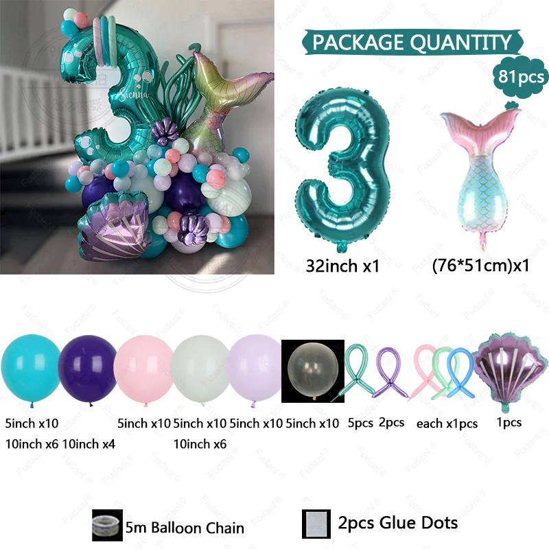 مجموعة 81 قطعة من بالونات حفلات أرييل تتضمن 32 بوصة رقم 1-9 بالونات فويل باللون الأزرق المناسب لحفلات أعياد الميلاد للفتيات