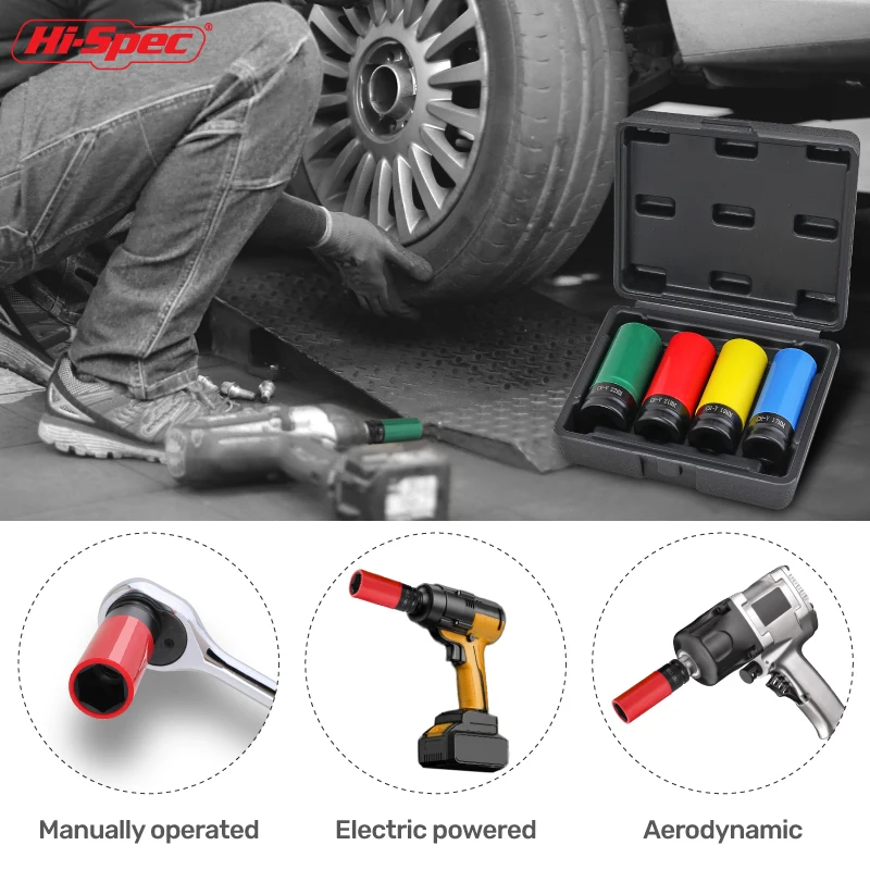 مجموعة مقابس حماية محور العجلة 4 قطع 1/2 بوصة من Hi-Spec - مجموعة مقابس أدوات السيارات لإصلاح السيارات، أدوات ميكانيكية لخدمة الإطارات
