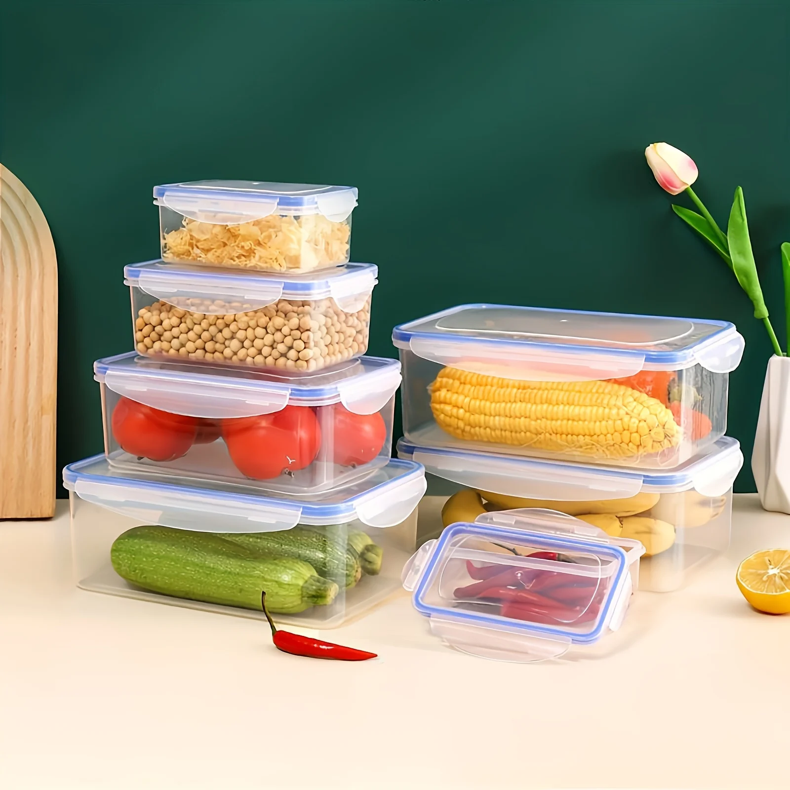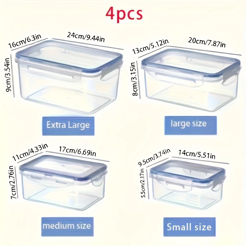 مجموعة مكونة من 4 قطع من حاويات تخزين الطعام، متوفرة بأحجام متعددة مناسبة للفواكه والخضروات والمعكرونة والوجبات الخفيفة واللحوم