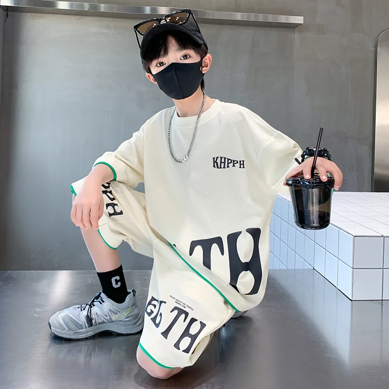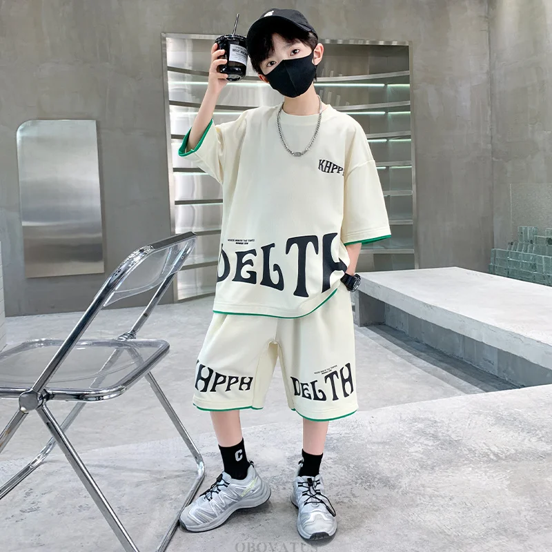 مجموعة ملابس صيفية للأطفال للأولاد بدلة رياضية مطبوعة بحروف للأطفال المراهقين ملابس قطنية كاجوال بأكمام قصيرة زي رياضي