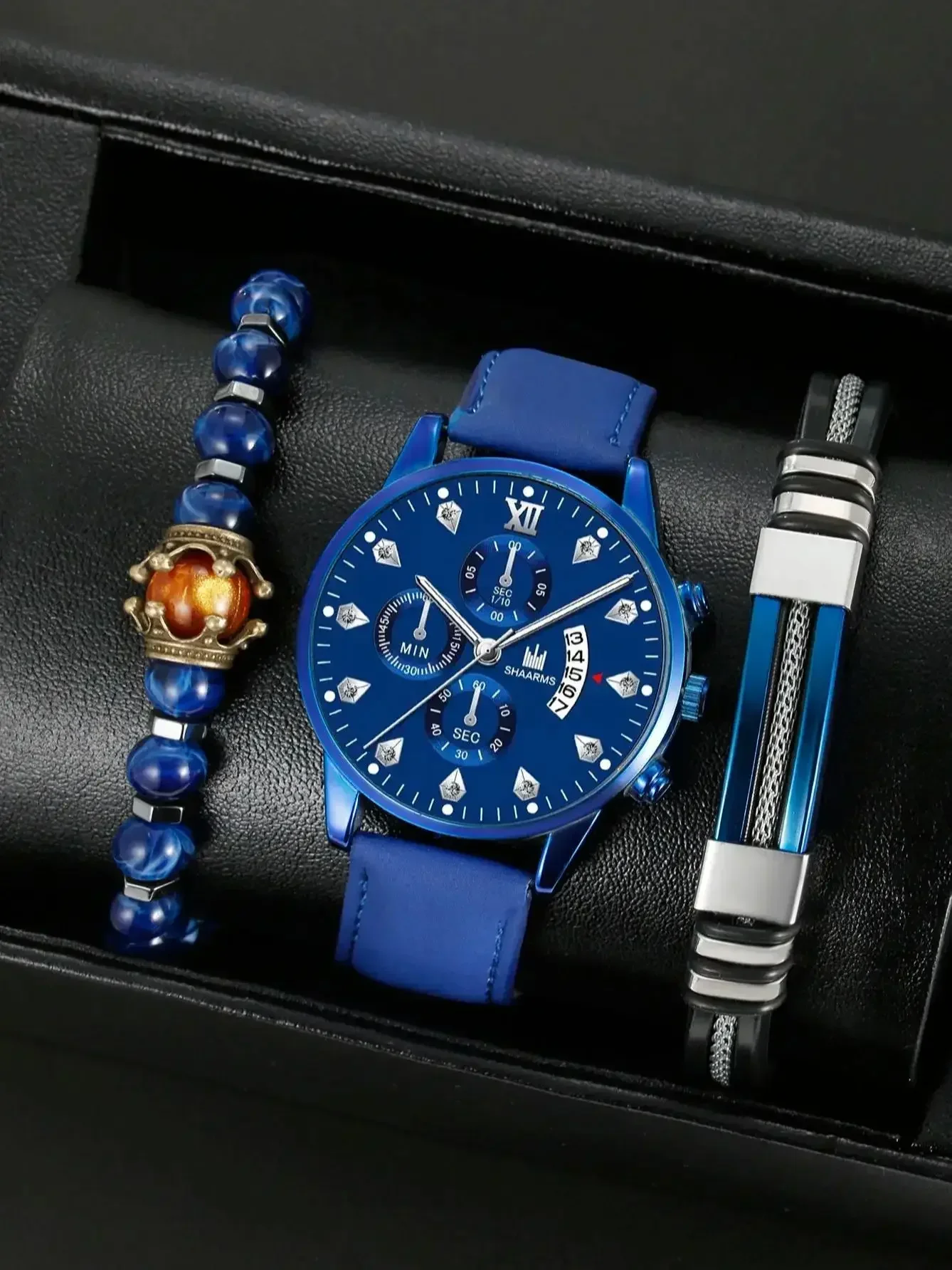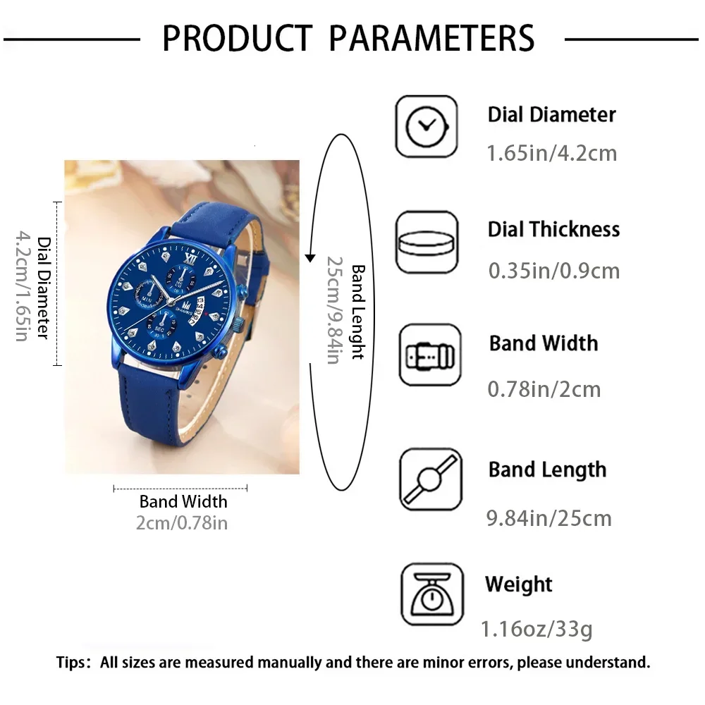طقم ساعات يد رياضية للرجال من الجلد 3/1 ساعات كوارتز فاخرة بتقويم للرجال ساعات عمل غير رسمية