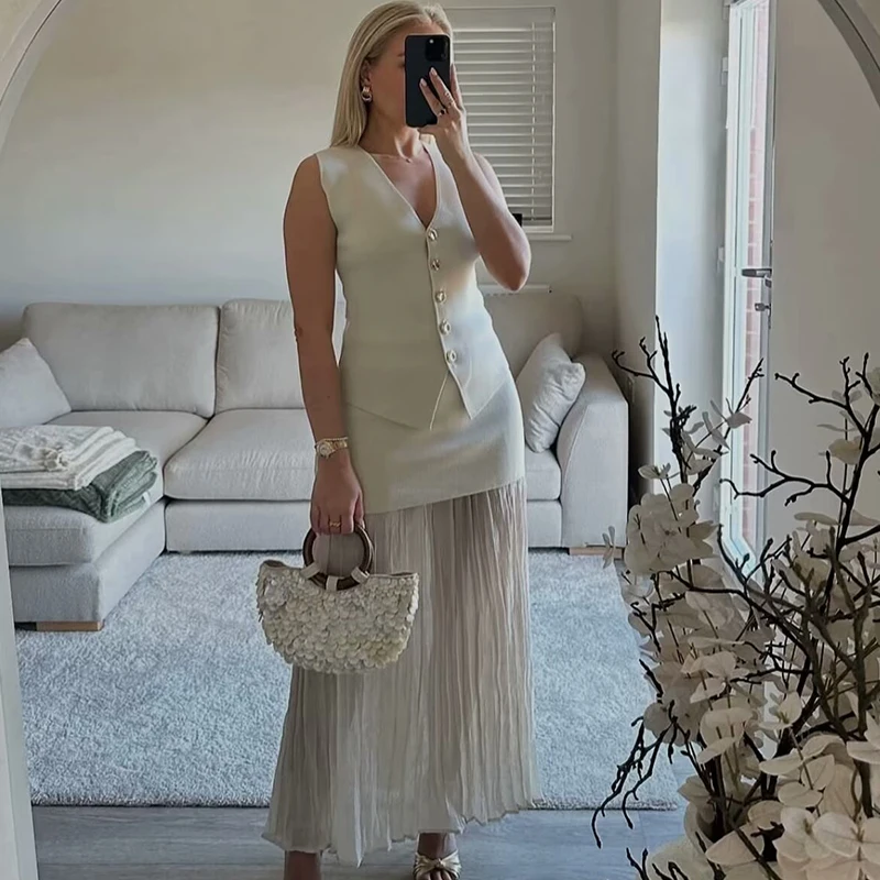 مجموعات الصيف النسائية 2025 جديد أنيق عطلة 2 قطعة مجموعة شيك مطاطا سليم التنانير النسائية مجموعات الشارع موضة الشباب البدلة