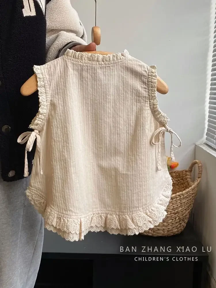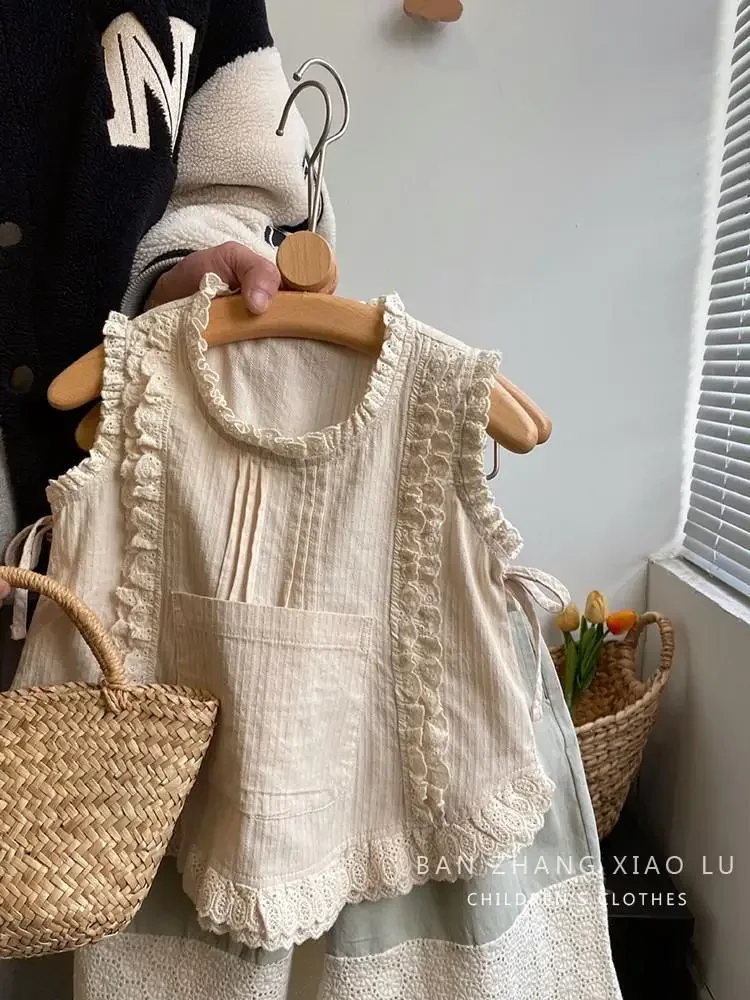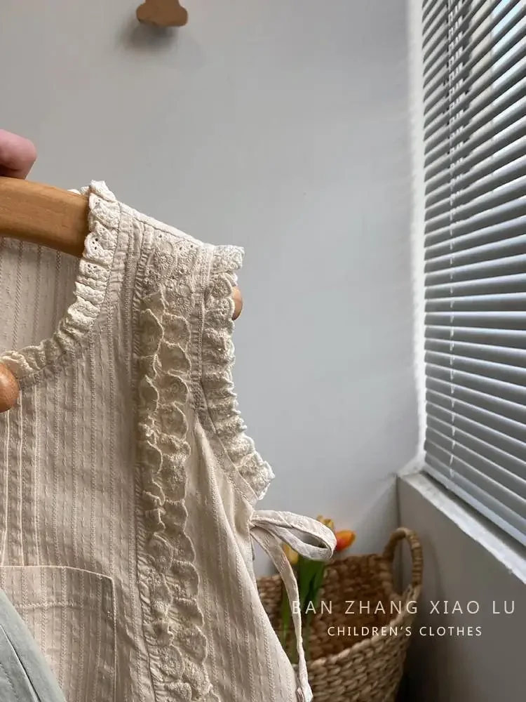 مجموعات ملابس الأطفال بلوزة مكشكشة بلا أكمام مع الدانتيل + الدانتيل السراويل واسعة الساق 2 قطعة ملابس الاطفال الفتيات 2 إلى 7 سنوات