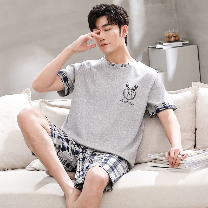 ملابس نوم قطنية كبيرة الحجم للرجال ، أكمام طويلة ، بنطلون طويل ، ملابس نوم للشباب ، ملابس منزلية ، مجموعتان ، بيجامات مخططة
