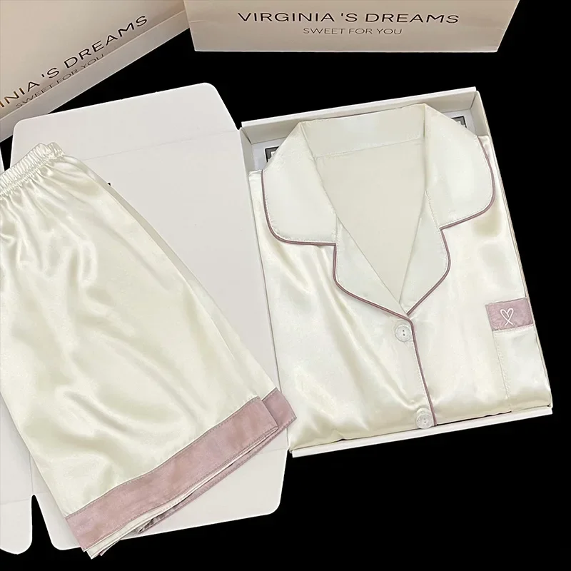 ملابس نوم نسائية مقاس كبير بيجامة حريرية للطالبات بتصميم جميل وأكمام قصيرة طقم ملابس نوم بلون سادة ملابس صوفية