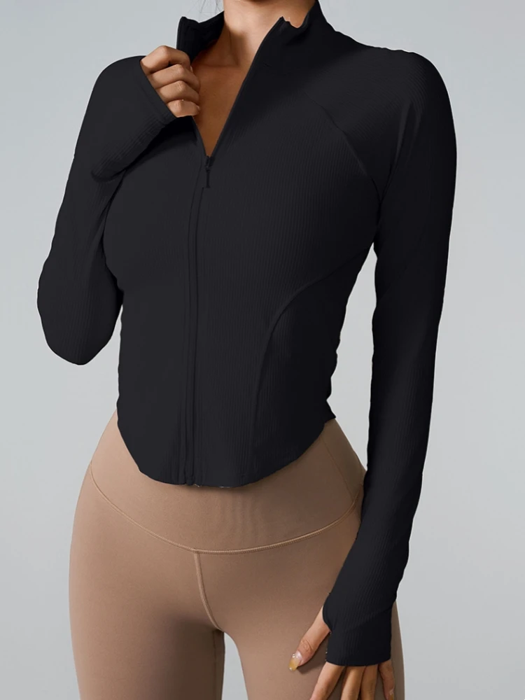 ملابس نسائية بأكمام طويلة وسحاب سترة رياضية ملابس خارجية للتدريب الاحترافي والجري واللياقة البدنية ملابس ربيعية