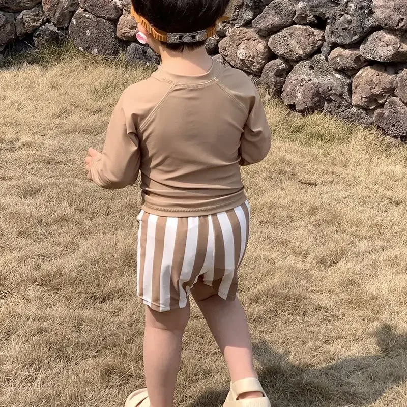 ملابس سباحة وشورت بأكمام طويلة للأطفال ، ملابس سباحة سريعة الجفاف ، ملابس سباحة للأولاد الصغار ، بلون ثابت ، بدلة 2 *