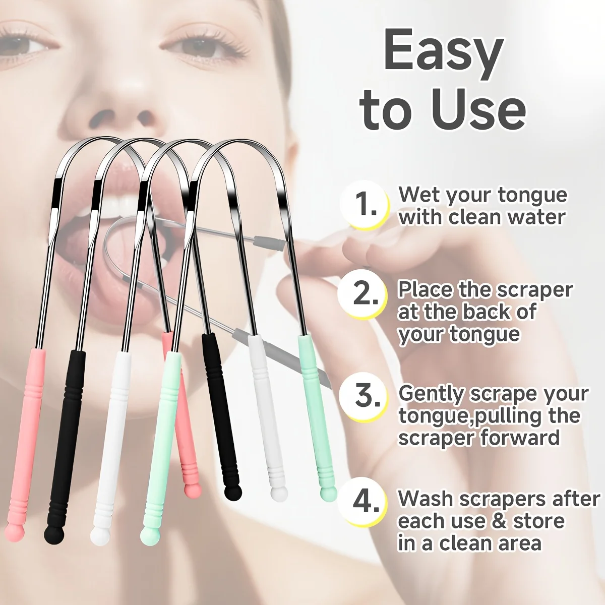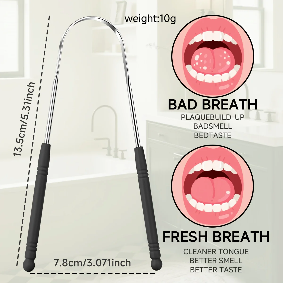 منظفات مكشطة اللسان من الفولاذ المقاوم للصدأ قابلة لإعادة الاستخدام، فرشاة تنظيف صحة الفم قابلة لإعادة الاستخدام، تمنع الفم الغائم، مناسبة للبالغين