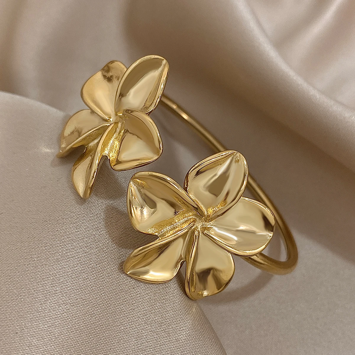 موضة الذهب اللون المعادن زهرة الكفة سوار للنساء أساور أنيقة مقاومة للماء الإناث حفل زفاف اكسسوارات 2025
