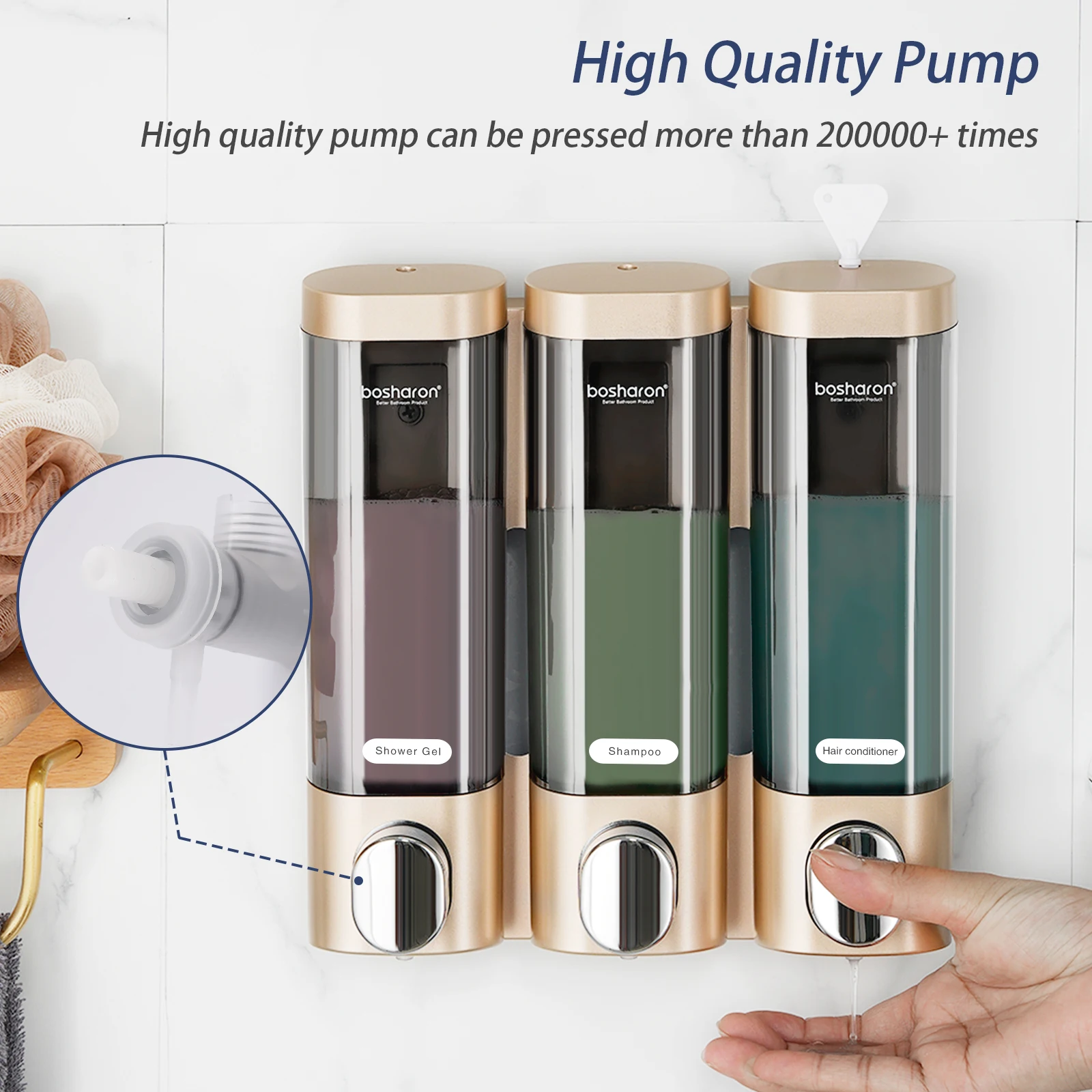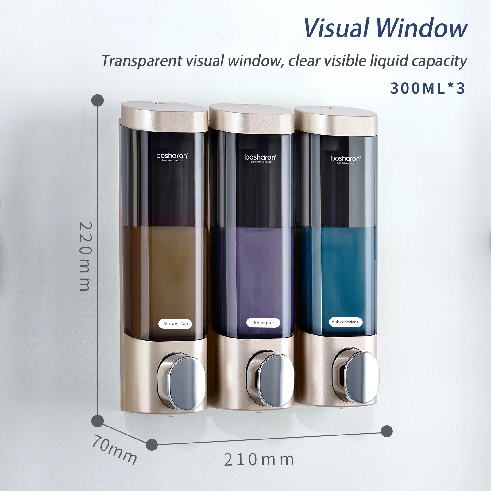 موزع الصابون السائل جدار جبل ABS البلاستيك الثلاثي دش اليد الشامبو مكيف الحمام الصحي زجاجة يدوية 300 مللي * 3 في 1