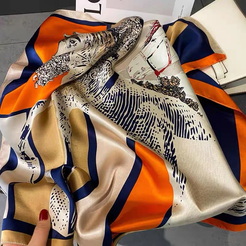 مربع وشاح اليدوية شال الحجاب الشباك هندسية مخطط مزاجه المرأة المهنية مربع الحرير واقية من الشمس جديد 90 سنتيمتر