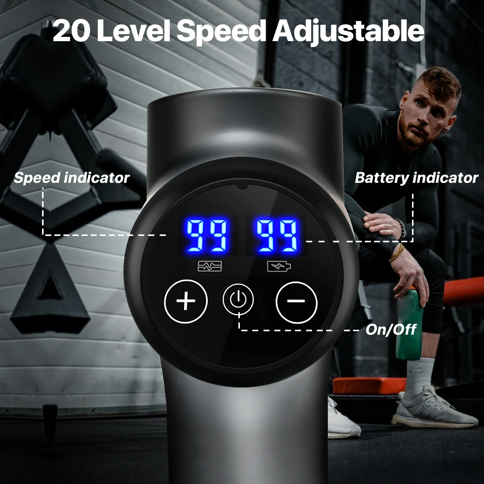 مسدس تدليك، مسدس تدليك الأنسجة العميقة، مدلك قرع لتخفيف الآلام مع 8 رؤوس تدليك و99 سرعة