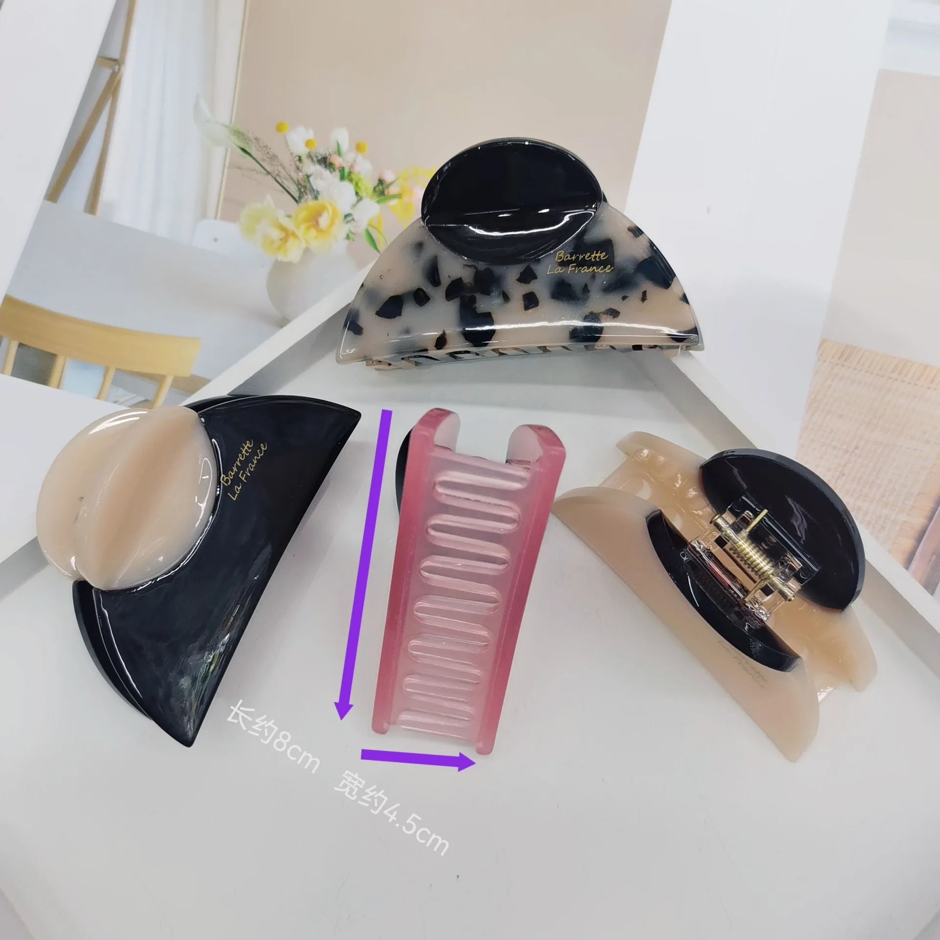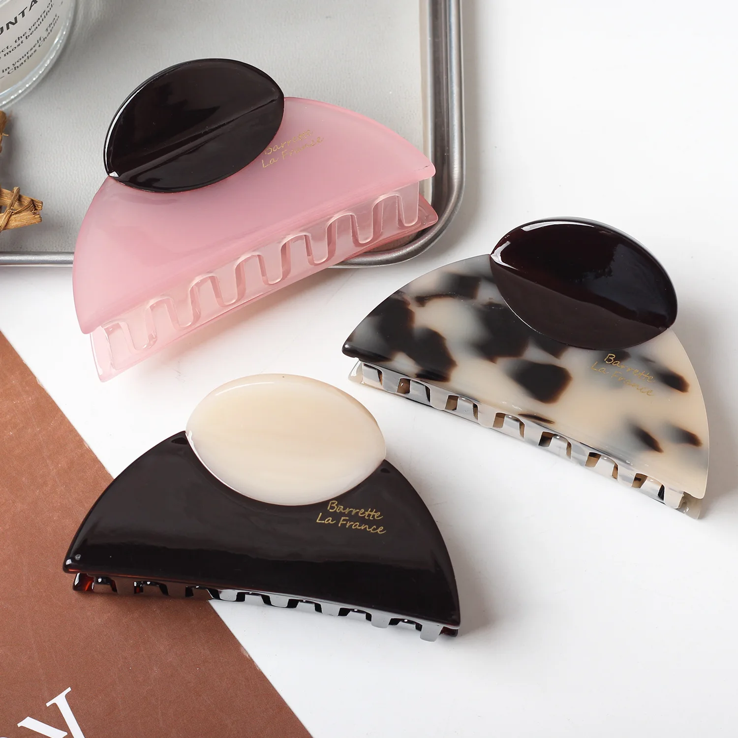 مشبك شعر فرنسي أنيق عتيق بلونين مع تصميم رخامي من الحبوب الخشبية مثالي اليومية غير الرسمية ومخالب الشعر اللطيفة