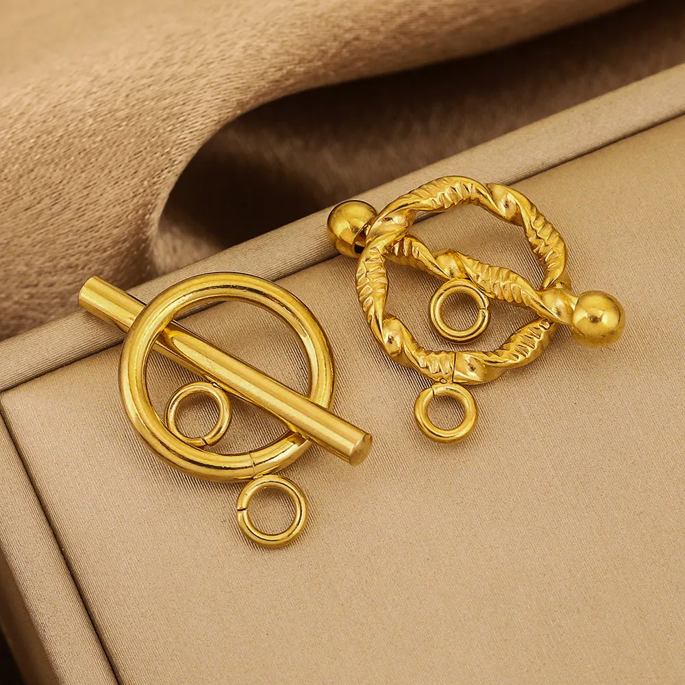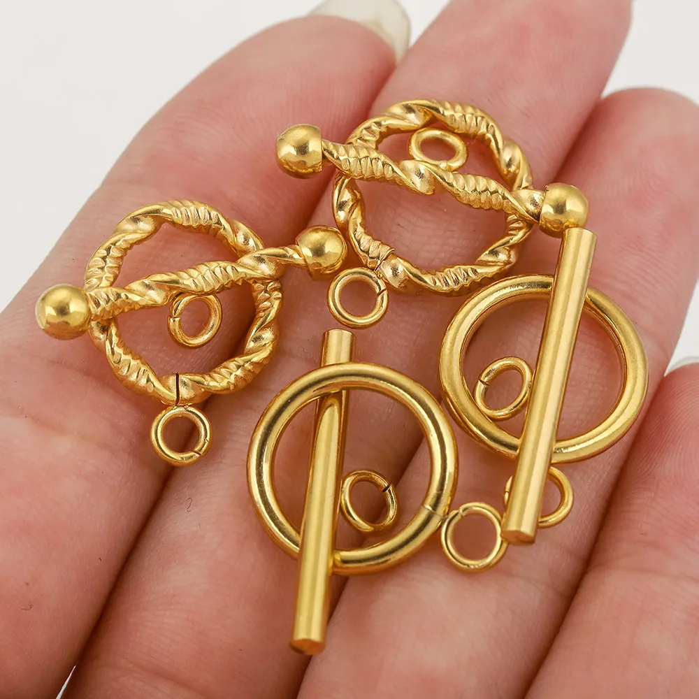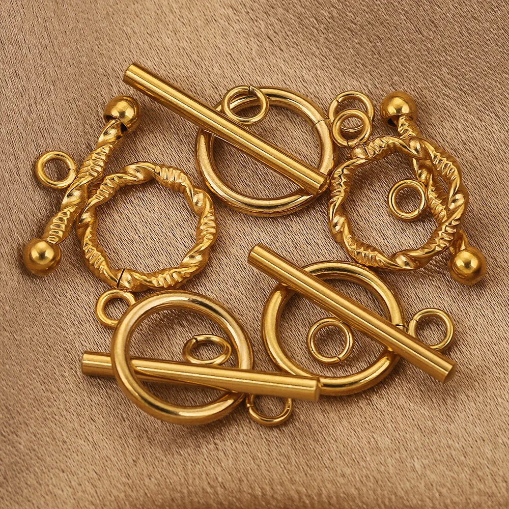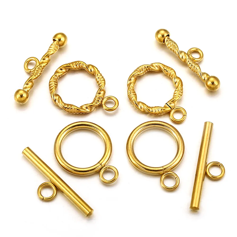 مشبك تبديل دائري مطلي بالذهب من الفولاذ المقاوم للصدأ ، موصل للقلادة والإسورة سهل الاستخدام ، ملحقات صناعة المجوهرات ، مشغولات يدوية للبيع بالجملة ، 5 مجموعات
