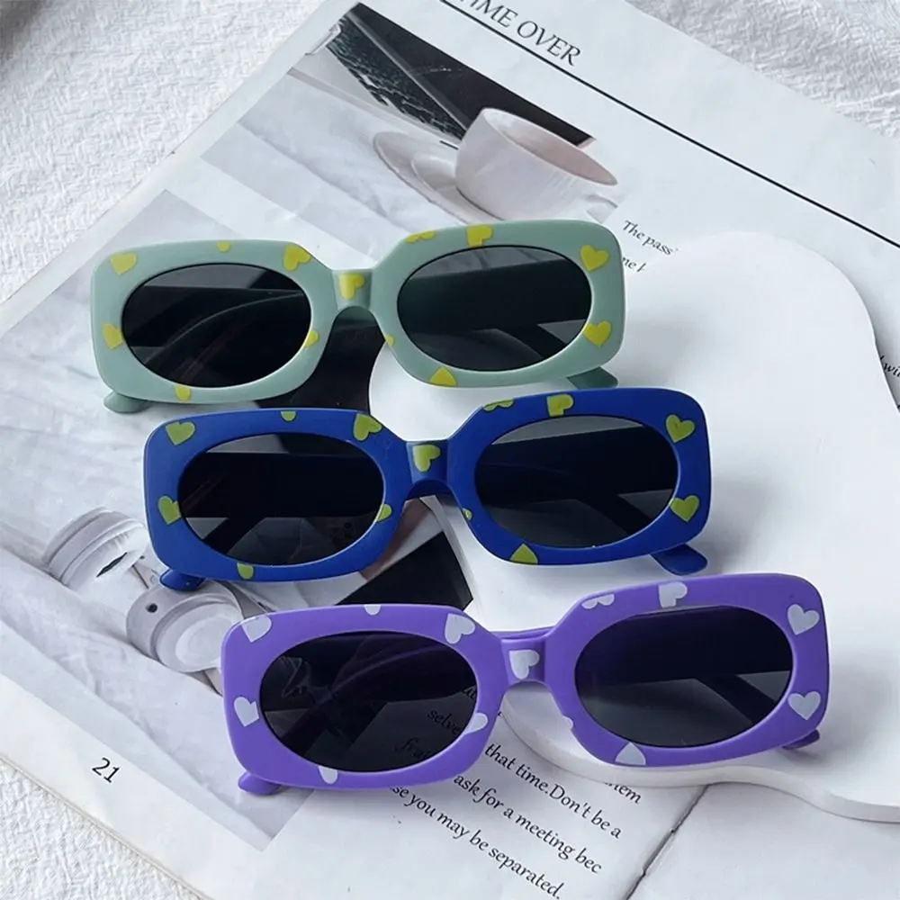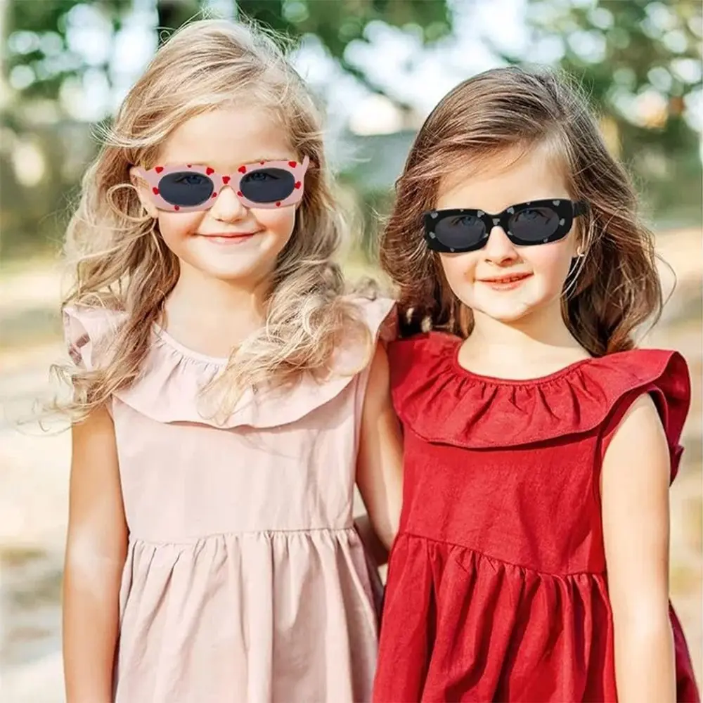نظارات شمسية عتيقة مطبوعة على شكل قلب للأطفال ، نظارات شمسية مستطيلة للفتيات والفتيان ، ظلال حماية من الشمس ، من 2 إلى 8 سنوات