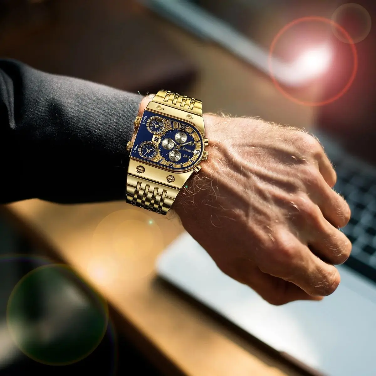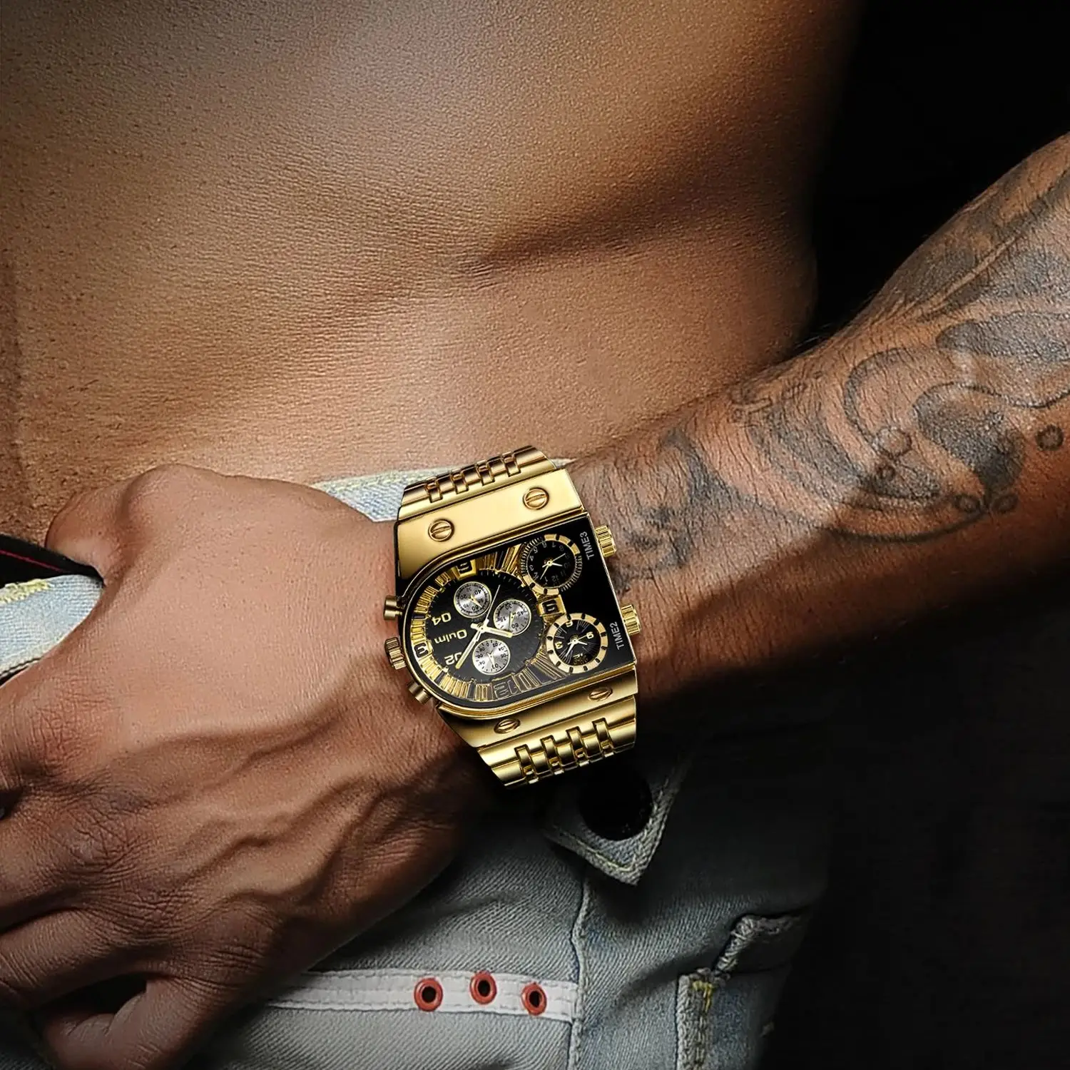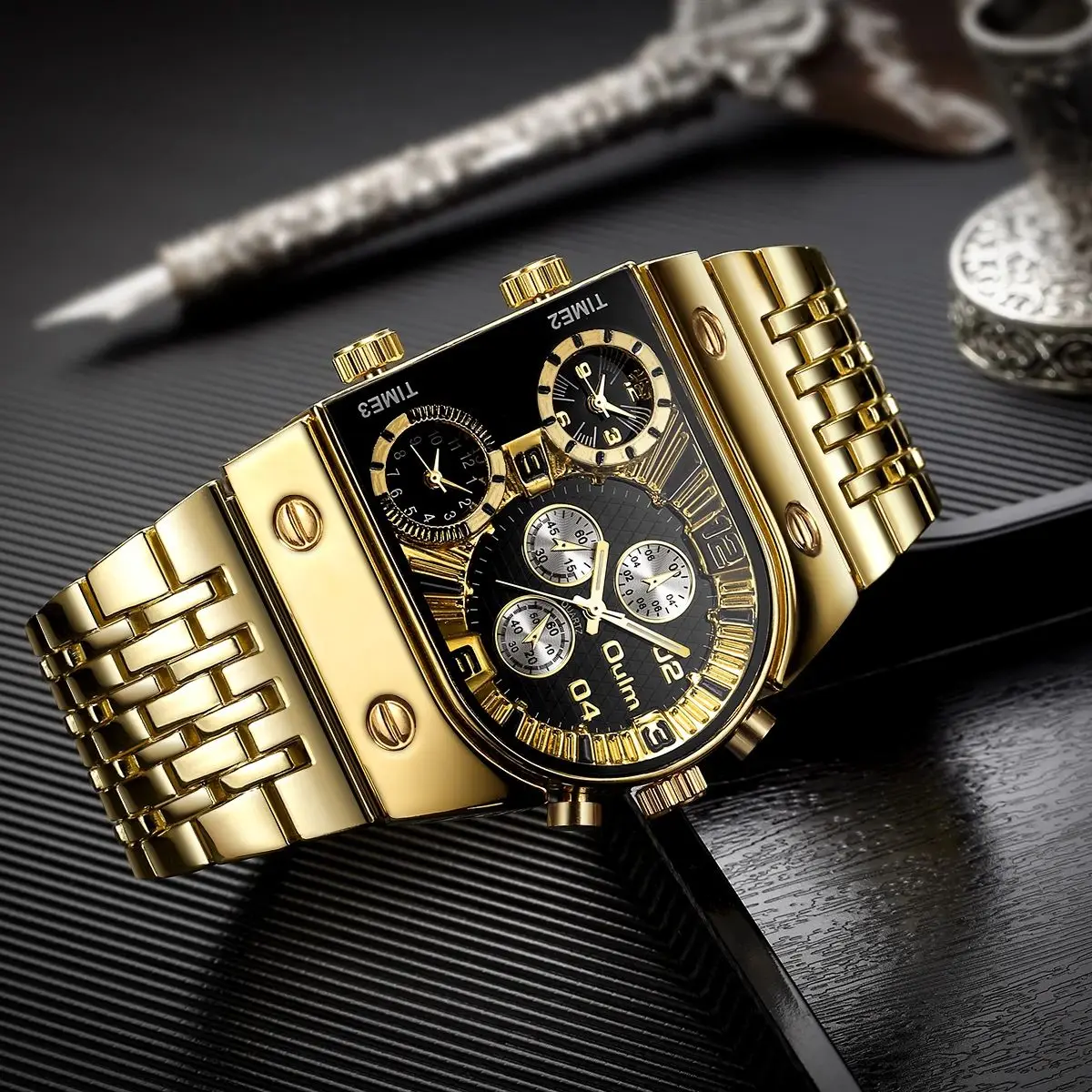 Oulm موضة ساعة رجالي فاخرة منطقة زمنية متعددة الطلب الكبير مضيئة ساعات كوارتز رجالية relojes الفقرة hombre
