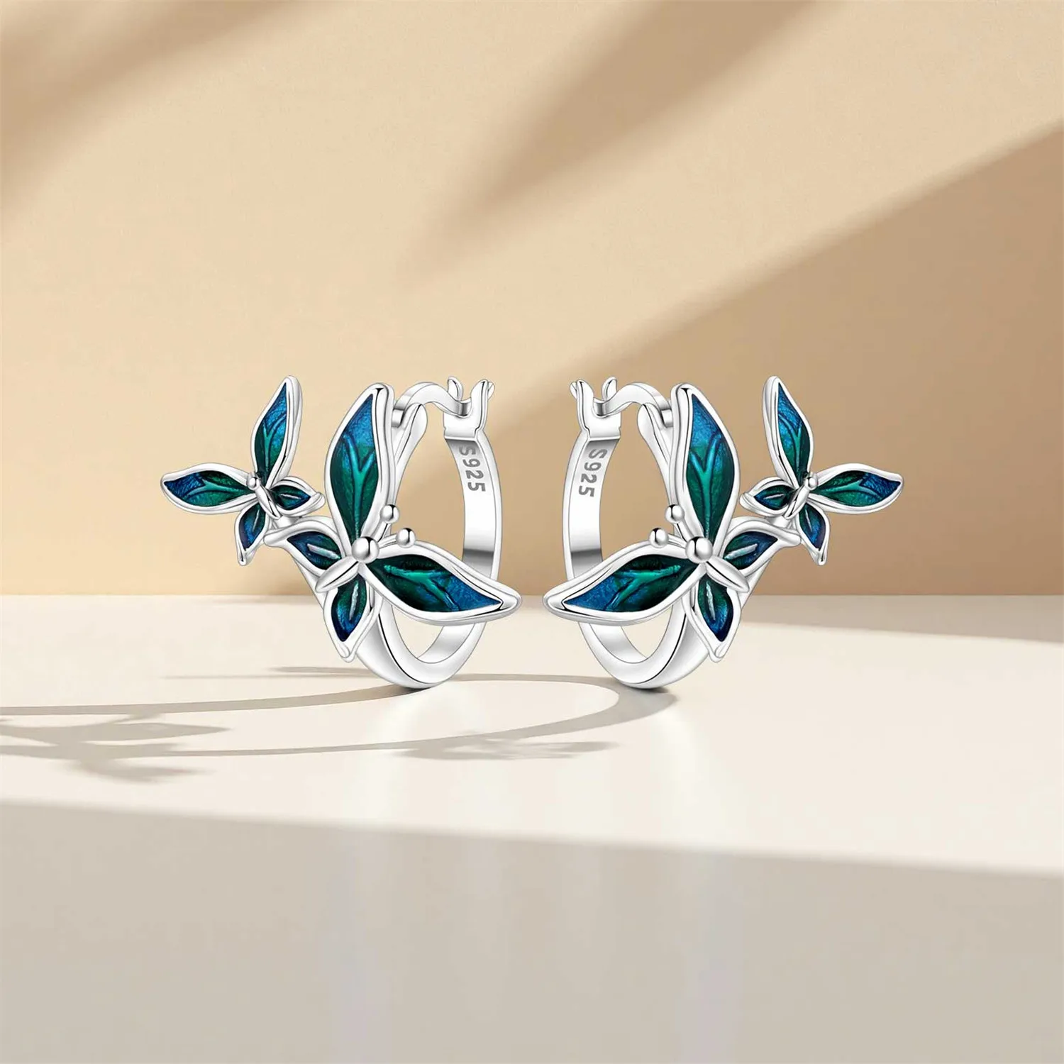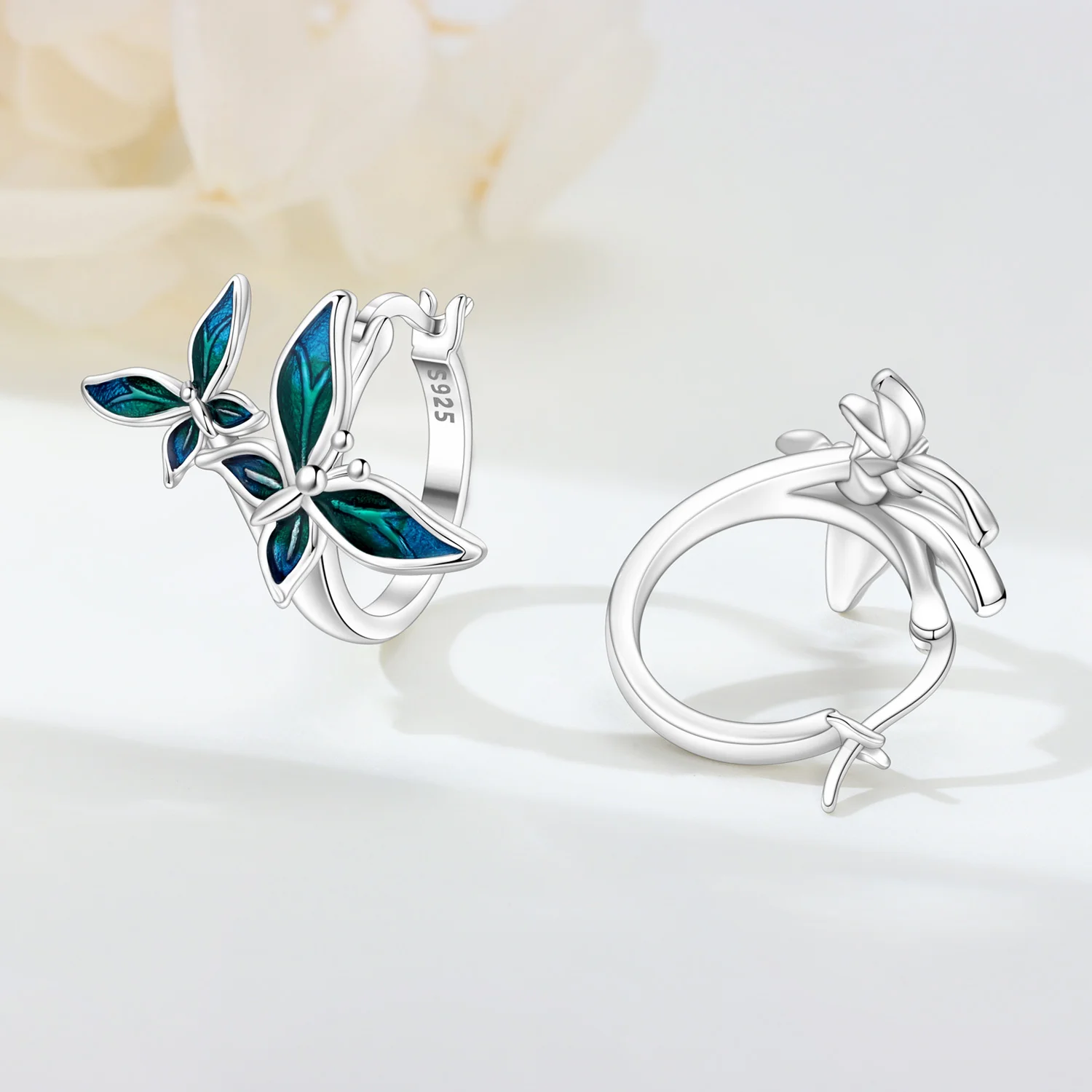 PANPOKI الأصلي 925 فضة مزدوجة فراشة الحشرات أقراط النساء هوب القرط الذكرى مجوهرات هدايا العصرية