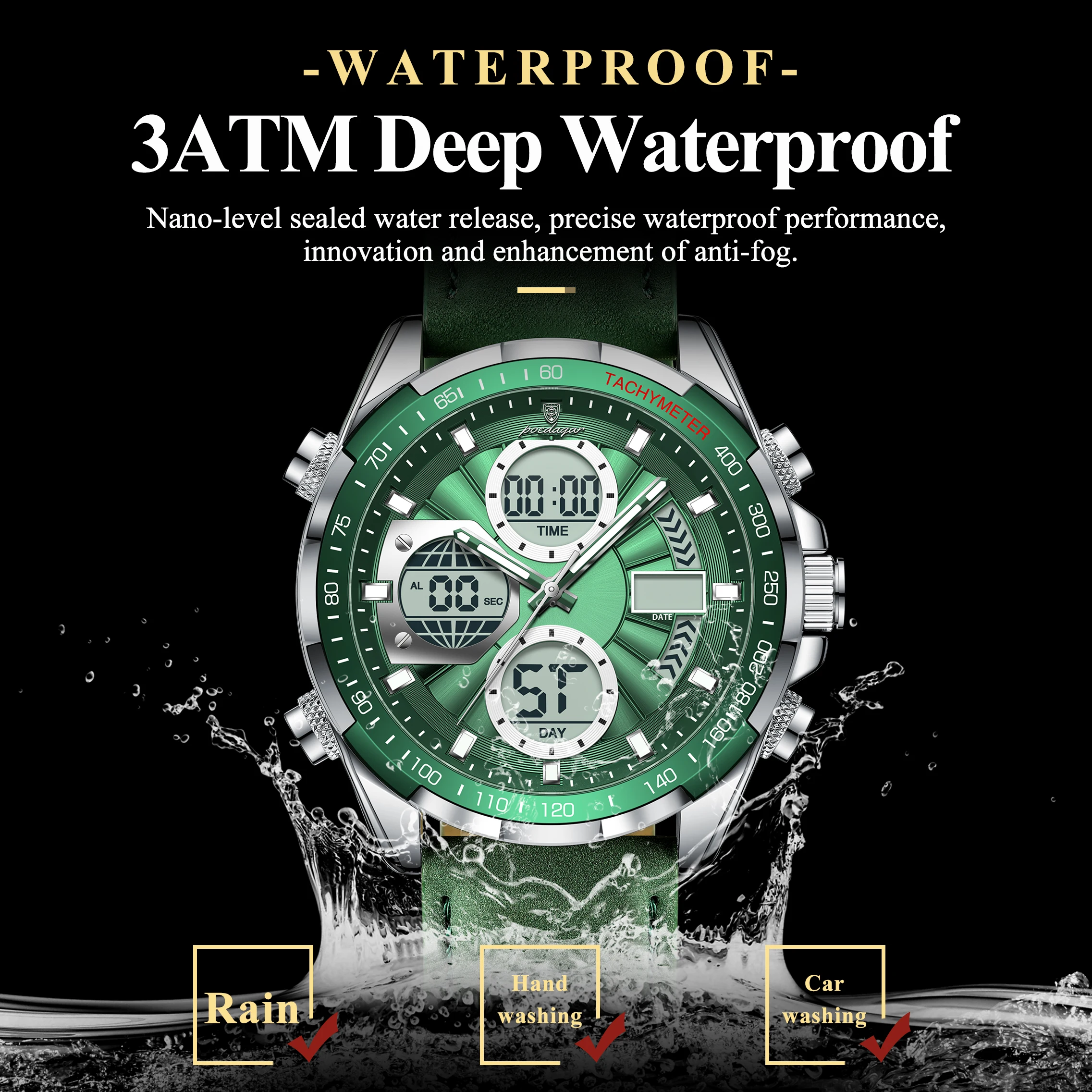POEDAGAR LED ساعة رجالية فاخرة مضيئة المزدوج عرض الوقت الرقمي رجل ساعة الإلكترونية ساعات كوارتز رجالية Reloj