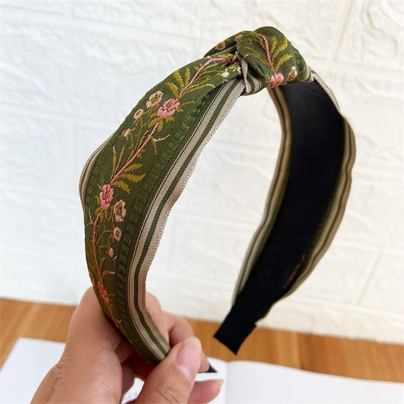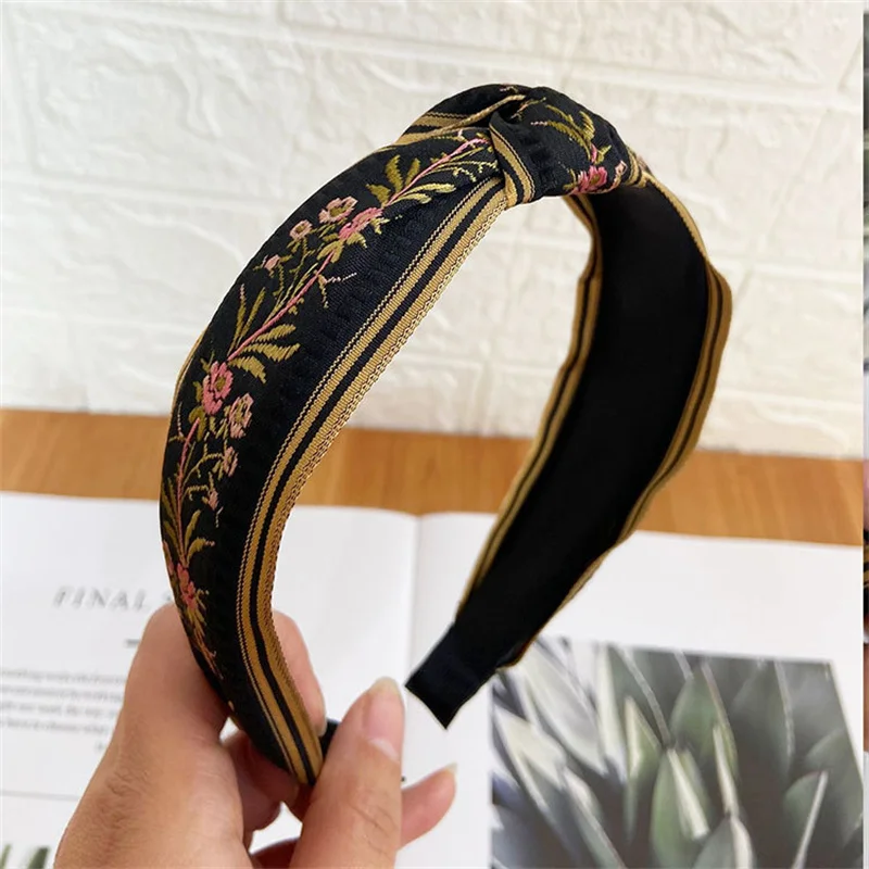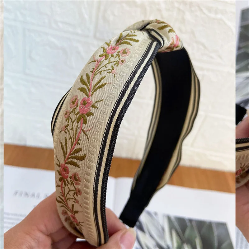 رابطة رأس بعقدة فيونكة مطرزة بالزهور للنساء والفتيات ، رباط شعر للسيدات ، إكسسوارات طوق الشعر ، التسوق اليومي ،