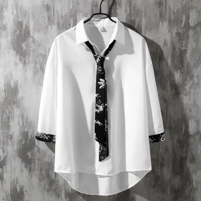 ربيع الخريف شعبية قصيرة الأكمام النمط الياباني قميص غير رسمي الرجال فضفاضة تناسب الياقة البيضاء زر متابعة للصيف