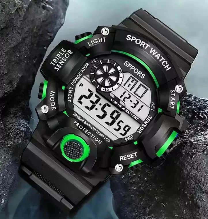 ساعة يد رياضية إلكترونية للرجال، قرص كبير، متعددة الوظائف، مقاومة للماء، منبه مضيء للأطفال، ساعة عسكرية للرجال