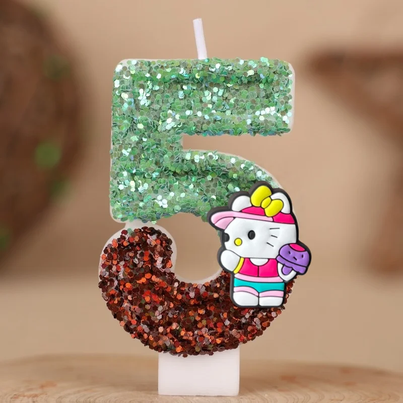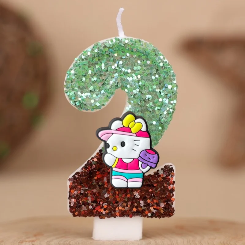شمعة عيد ميلاد رقم كاواي هالو كيتي سانريو كيتي كات، شموع رقمية لتزيين كعكة عيد الميلاد، شموع حفلات الذكرى السنوية