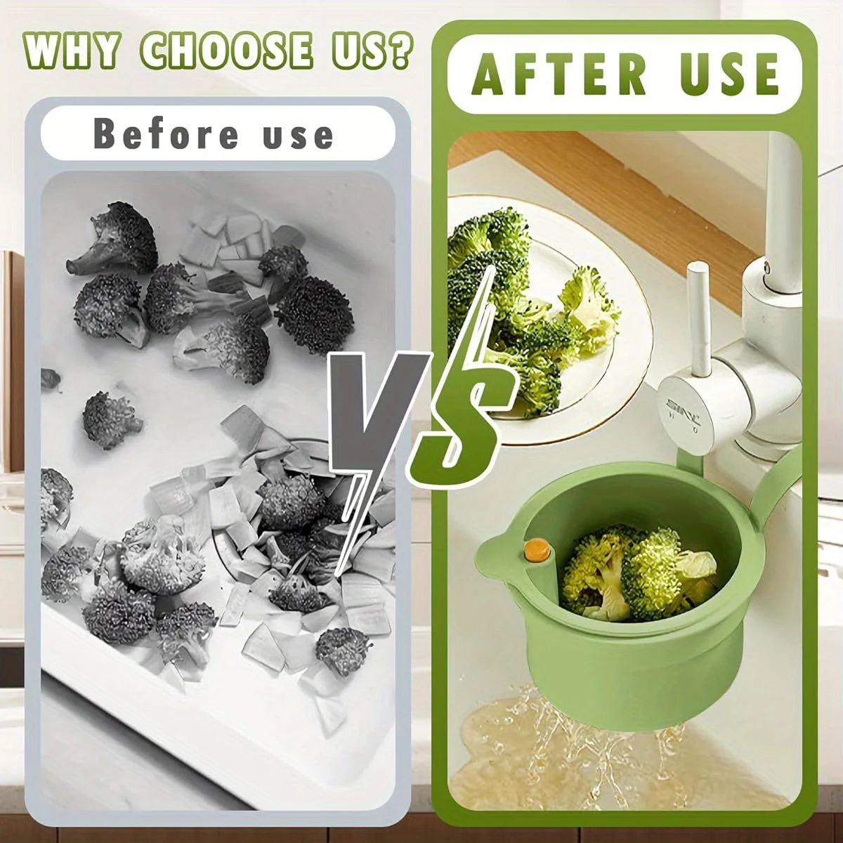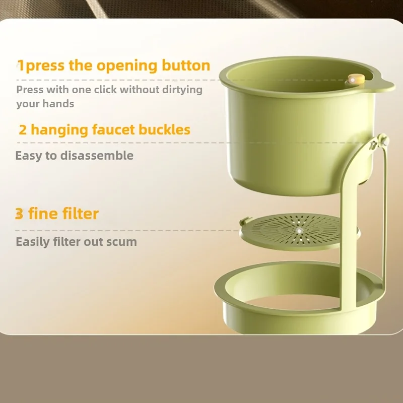 سلة حوض مثبتة على الحائط بتصريف سريع مع غطاء قابل للفصل والفتح مصفاة متعددة الوظائف لتنظيف الفواكه فلتر نفايات الطعام للمطبخ عملية متينة مثالية لتنظيم وترتيب المطبخ وتوفير المساحة بسهولة