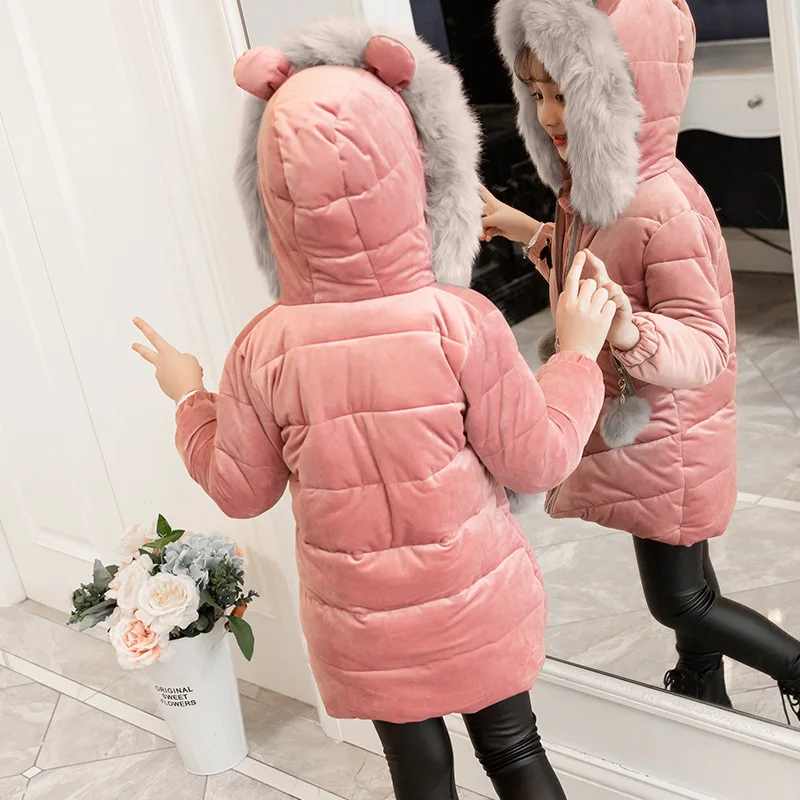 سترة أطفال مخملية مبطنة بغطاء رأس ، معطف سميك من الصوف ، ملابس خارجية للأطفال ، جاكيتات قطنية دافئة ، الفتيات ، الشتاء ، 3-12 سنة