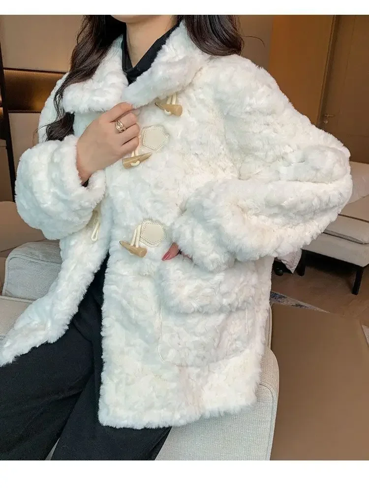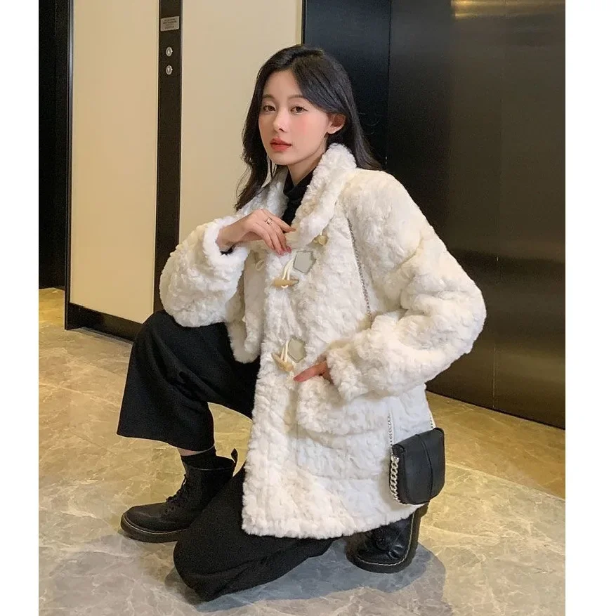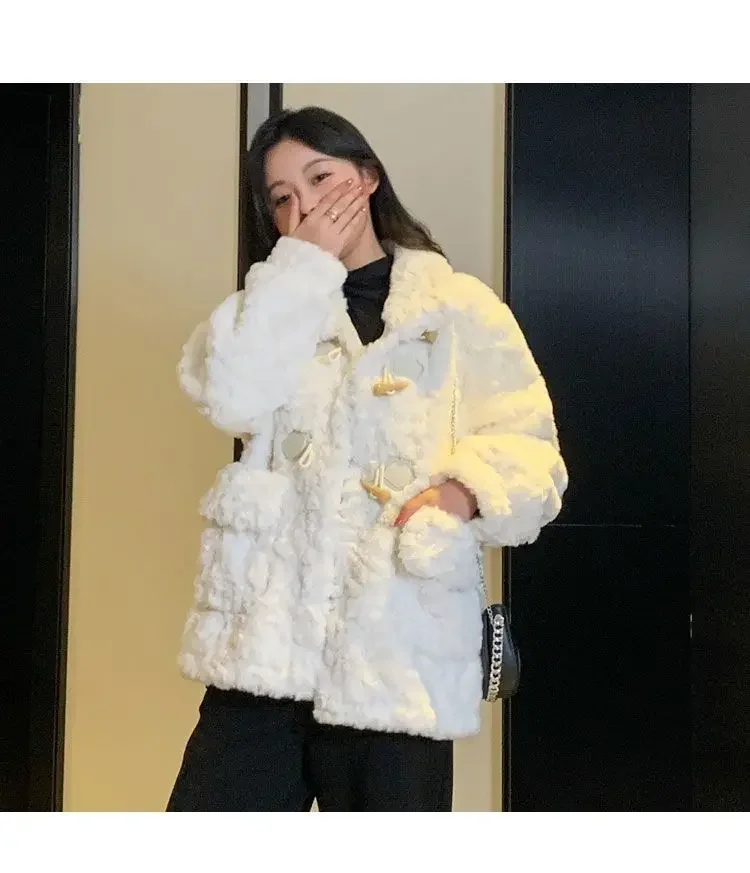 سترة فرو خروف نسائية شتوية دافئة من جلد الأرانب معطف فرو كاجوال صديق للبيئة بأكمام كاملة فضفاض مناسب من البر الرئيسي Ch