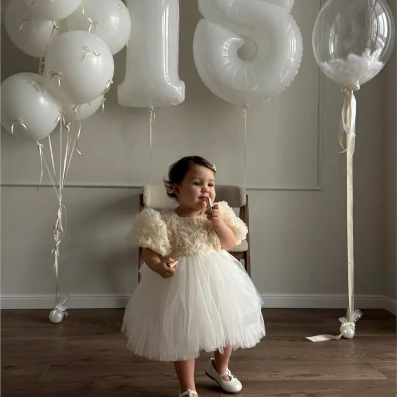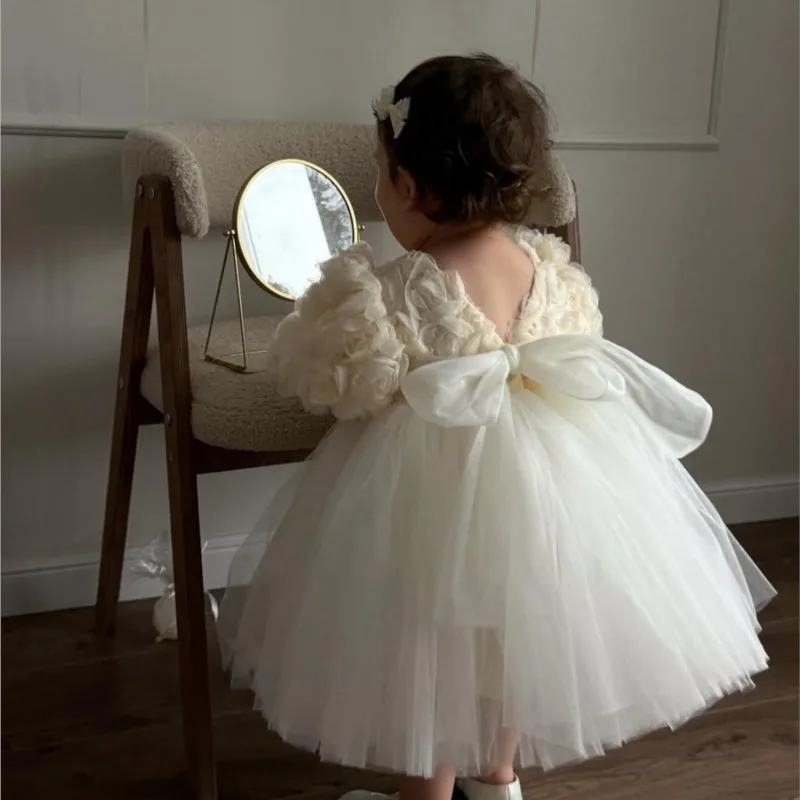طفلة الأميرة ثلاثية الأبعاد زهرة توتو فستان نفخة الأكمام الرضع طفل في سن المراهقة تول فيستدو حفل زفاف مسابقة ملابس الطفل 1-12Y