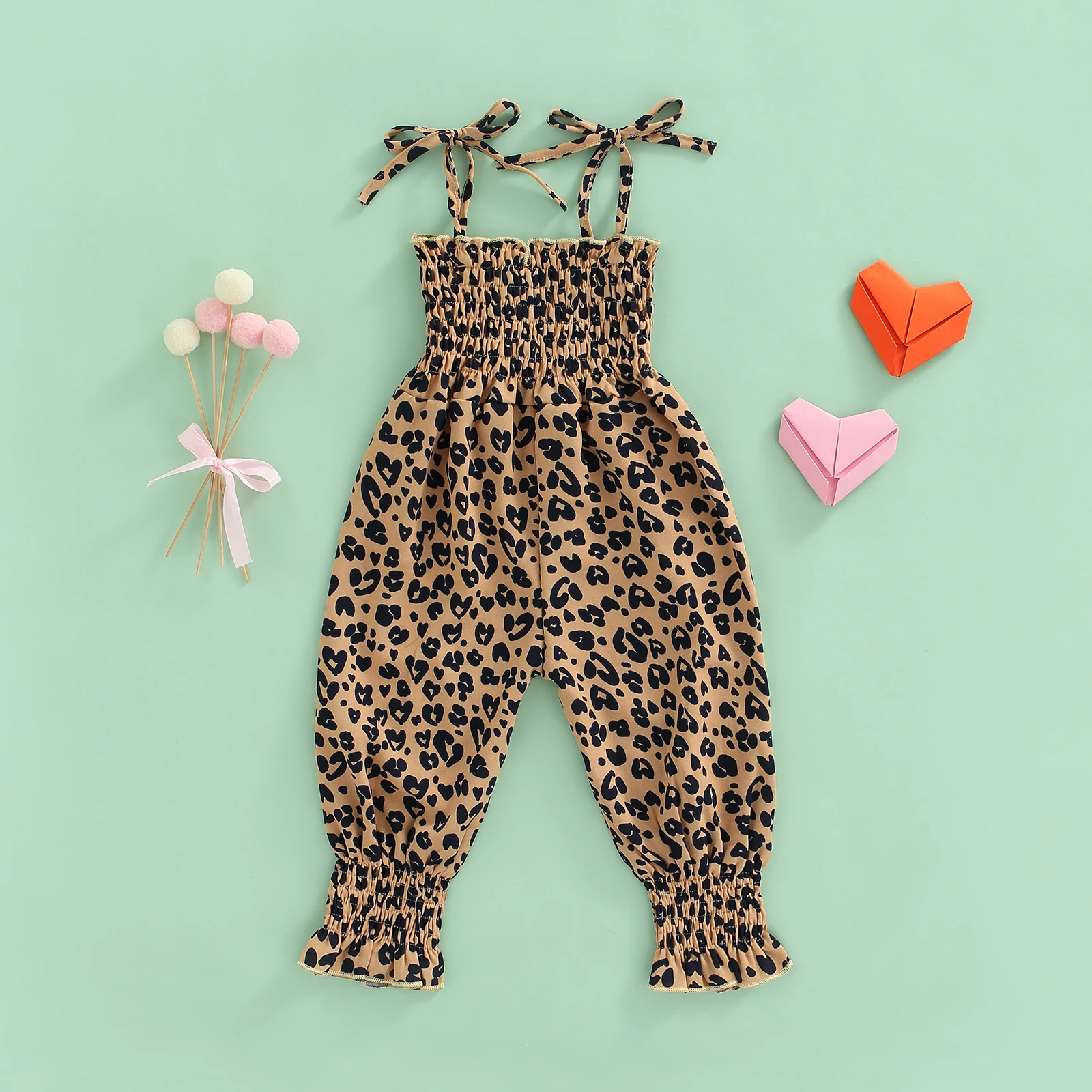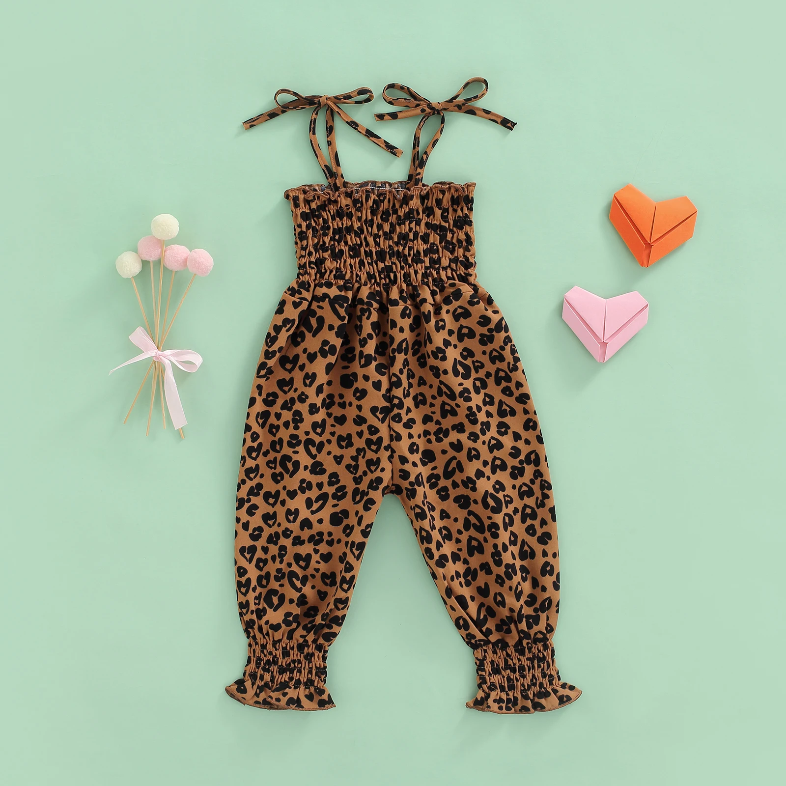 طفل رضيع فتاة حبال بذلة ، القلب/ليوبارد مطبوعة مطوي التعادل متابعة أسلوب بسيط وزرة ، عارضة الحلو رومبير 6 متر-4T