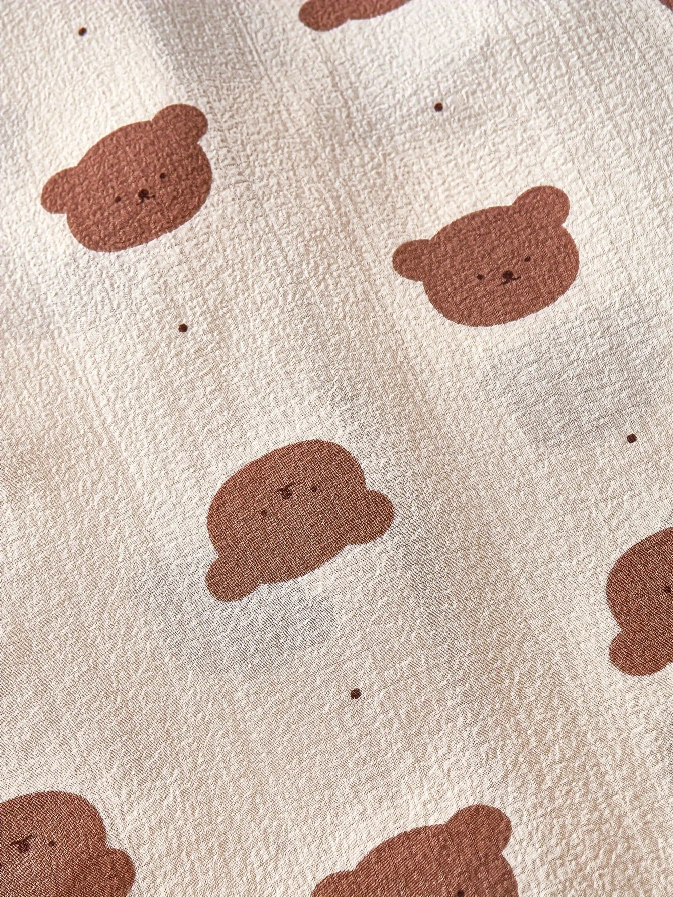 طقم بيجامة مريح بطبعة دب للنساء - كم طويل، بلوزة طية صدر السترة بأزرار وسراويل خصر مرنة، قابلة للغسل في الغسالة، للخريف