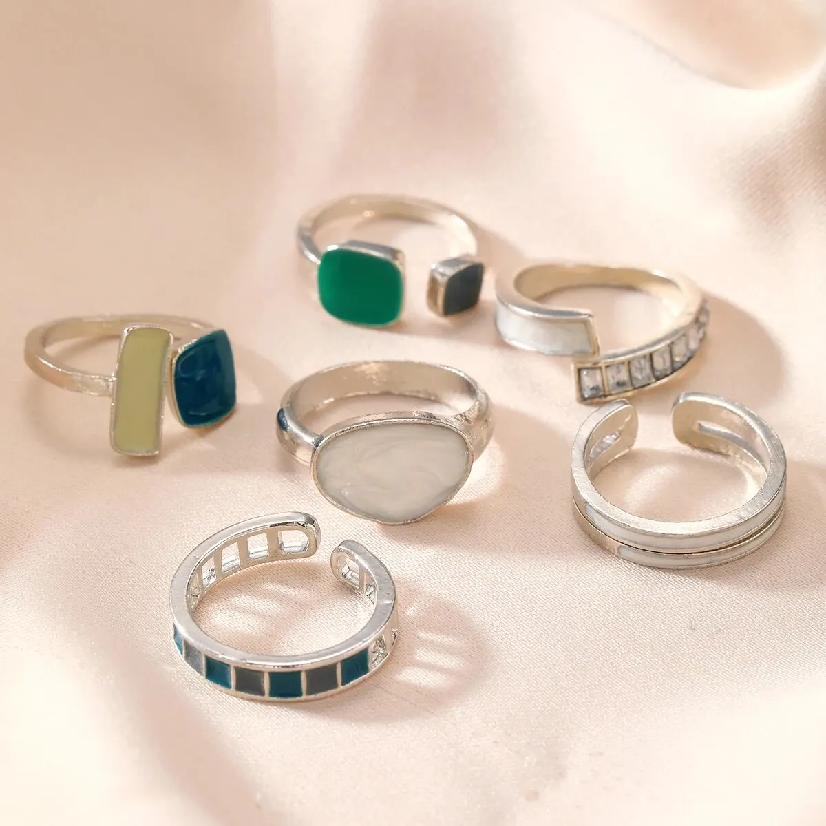 طقم خاتم زمردي عتيق عصري للنساء ، حجر ضوء القمر ، فتحة المفاصل ، هدية يومية متعددة الاستخدامات ، إكسسوارات جديدة ، 6.