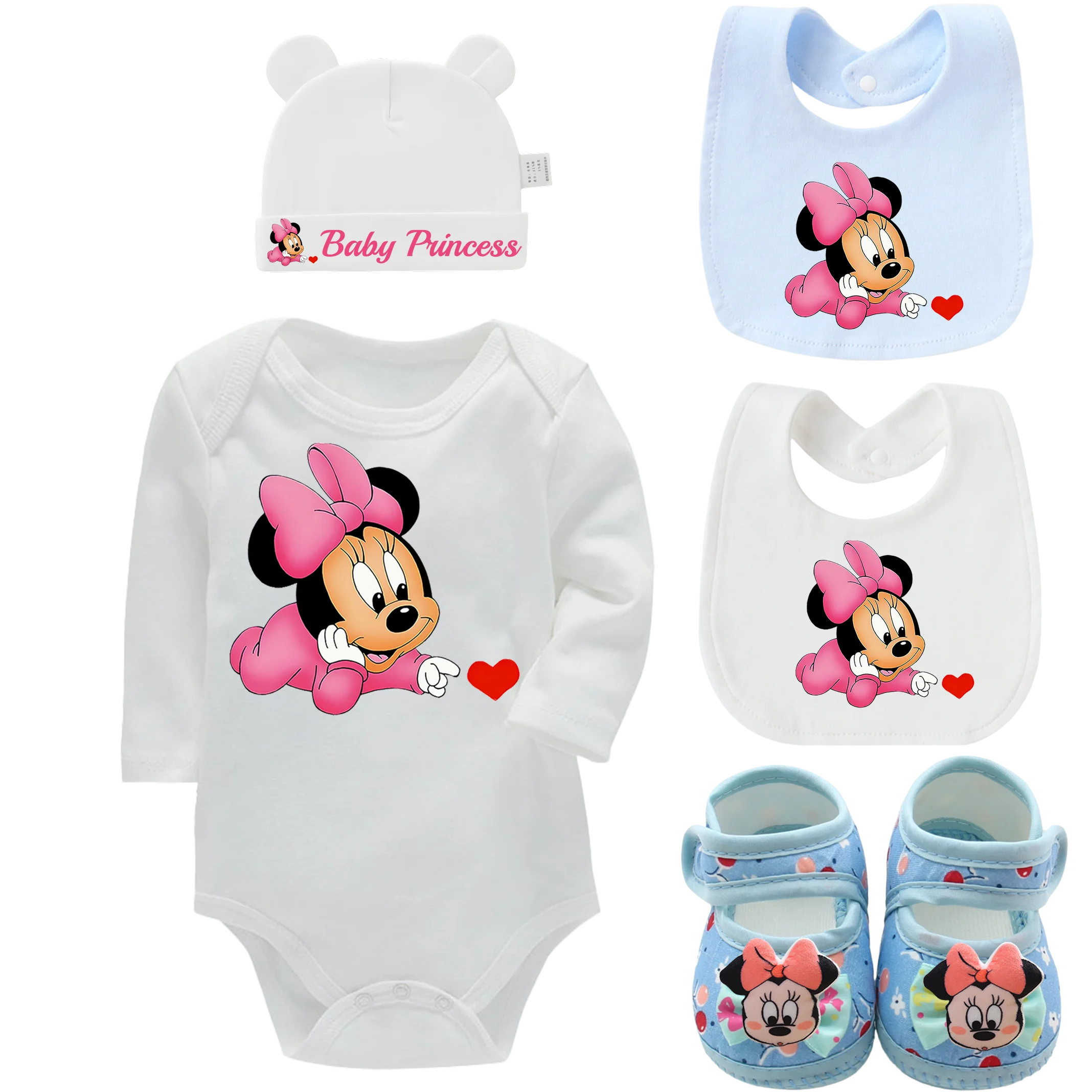 طقم للأطفال حديثي الولادة من الأولاد والبنات بذلة بأكمام طويلة + مناديل + قبعة + أحذية 5 قطع لكل مجموعة من 0 إلى 9 أشهر طقم الربيع والخريف