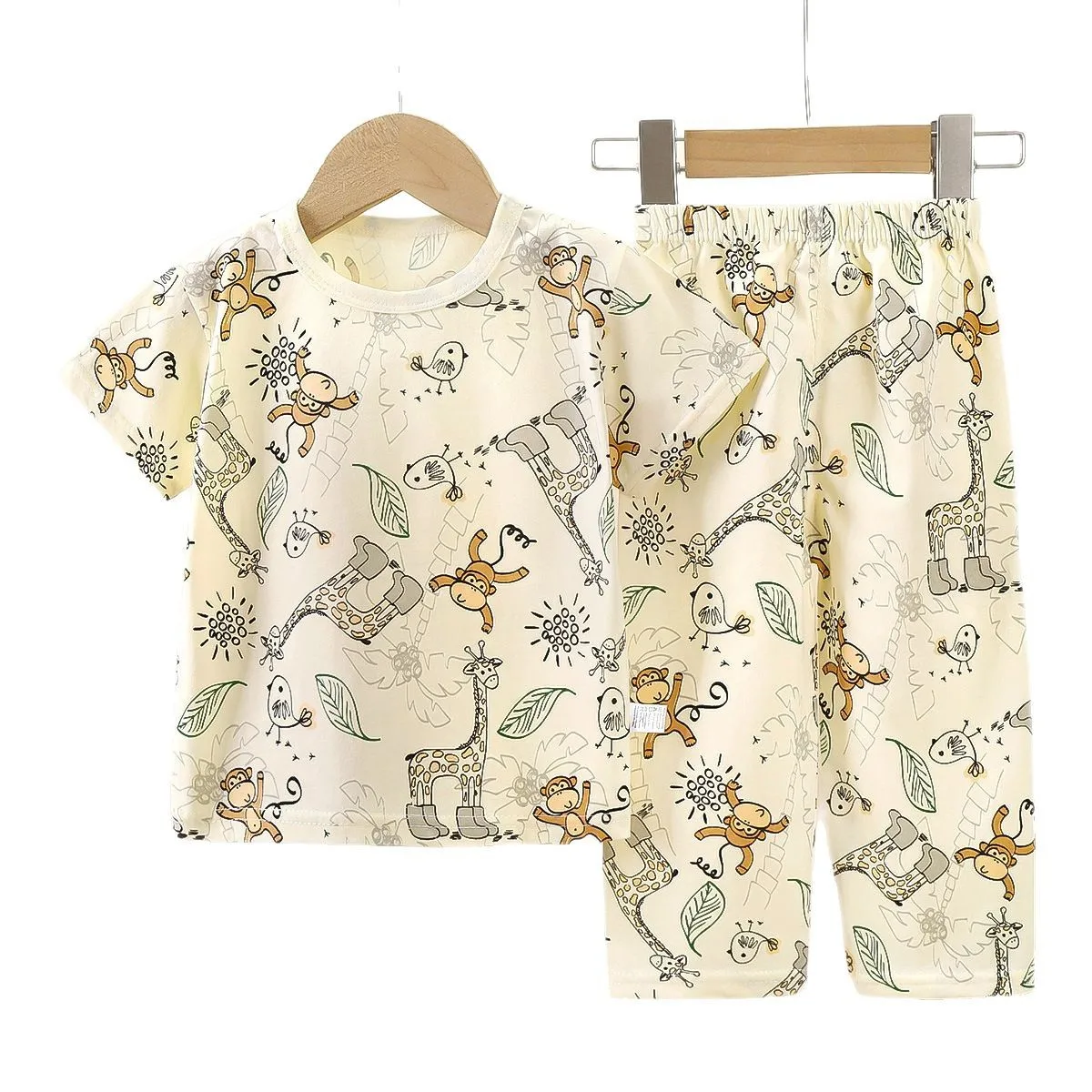 طقم ملابس داخلية بيجامة قطنية للأطفال بأكمام طويلة ملابس نوم للأولاد والبنات مناسبة لملابس المنزل في الصيف والخريف