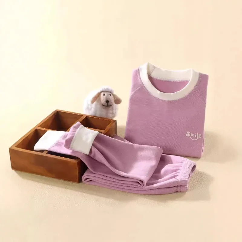 طقم ملابس داخلية حرارية مخملية للأطفال، بيجامات للأولاد والبنات، ملابس منزلية، ملابس الخريف، وسراويل الخريف
