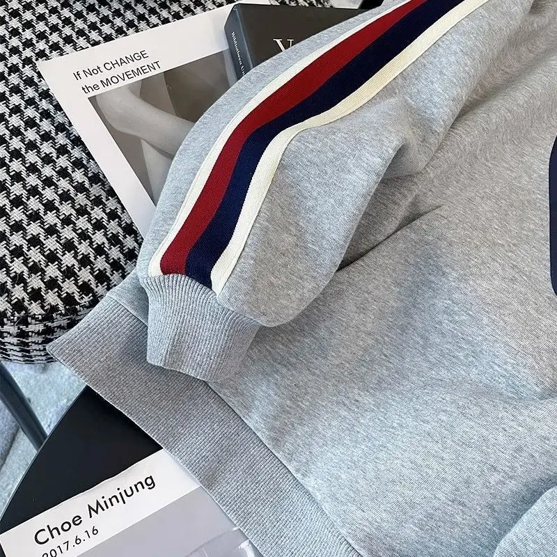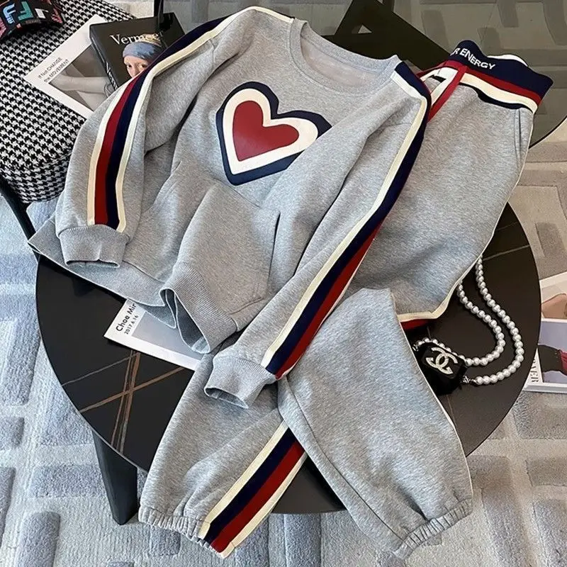 طقم ملابس رياضية كاجوال مبطن بالصوف للسيدات، سويت شيرت عصري مكون من قطعتين، ملابس شارع عصرية مقاس كبير