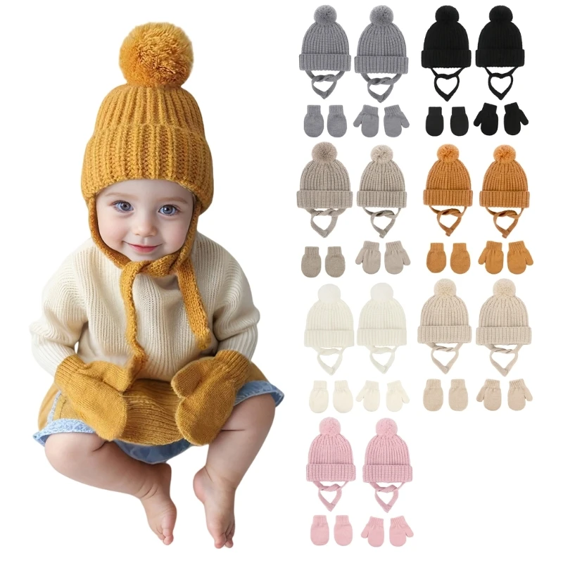 طقم من قطعتين قبعة وقفازات محبوكة وقبعة وقفازات حياكة قابلة للتنفس للأطفال