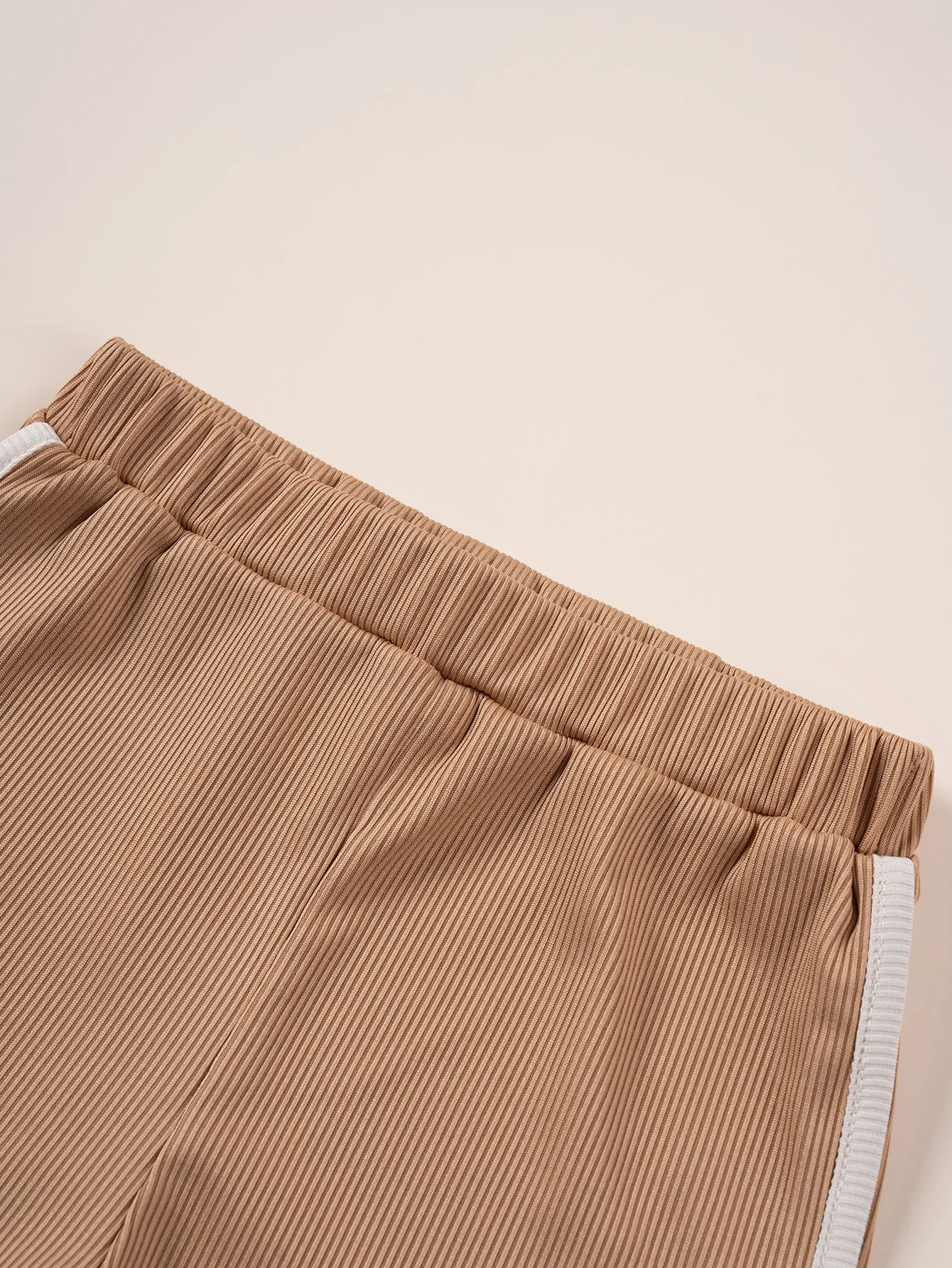 طقم توبات وسراويل قصيرة الأكمام سادة للأطفال ، ملابس غير رسمية ، ملابس أطفال ، بدلات أطفال ، صيف ، ملابس على طراز Preppy ، جديدة