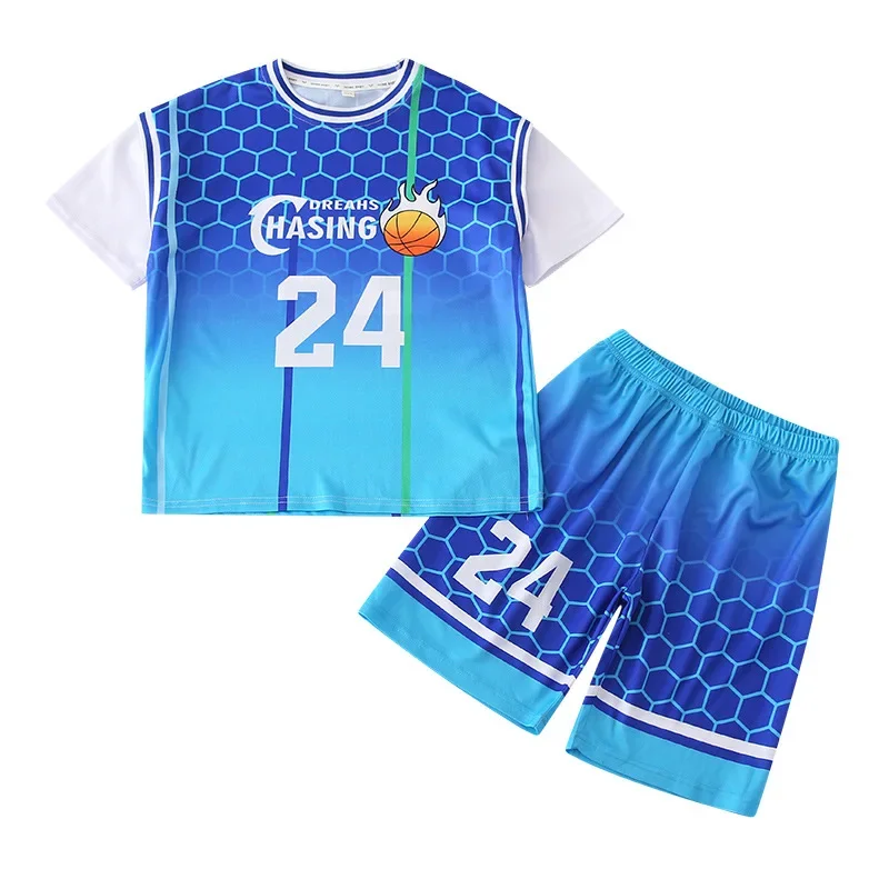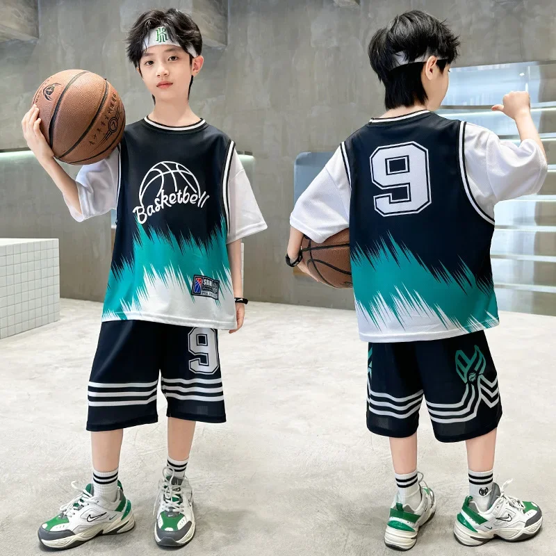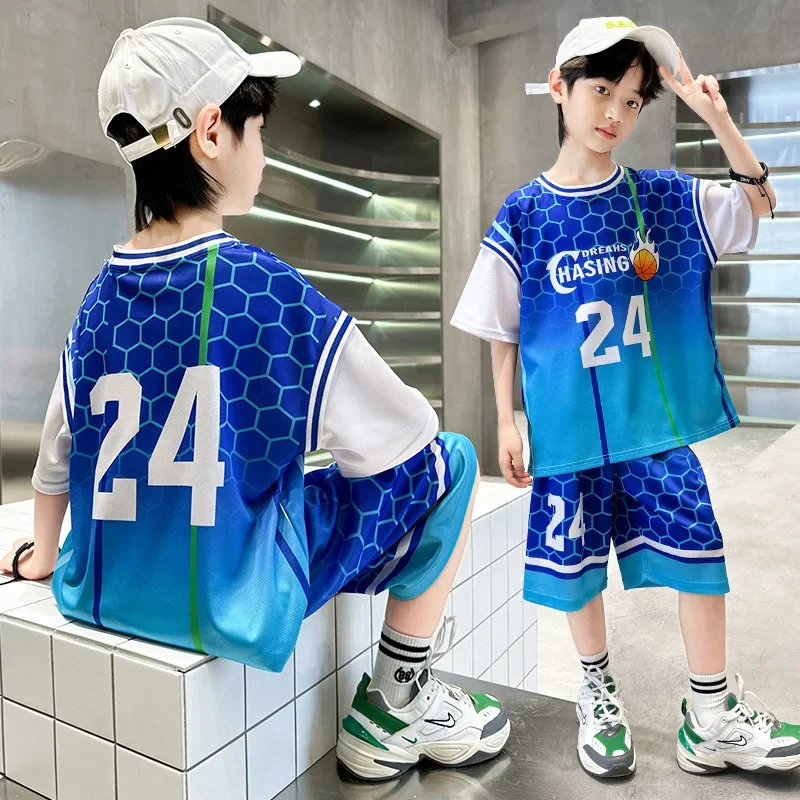 طقم زي كرة السلة للأولاد بأكمام قصيرة ورقيقة سريعة الجفاف ملابس رياضية مجموعة صيفية ملابس أطفال خفيفة الوزن