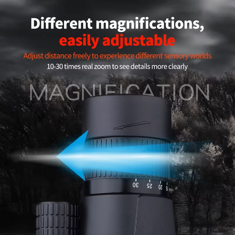 تلسكوب أحادي العين تكبير 10-30 × 50 مم مع منشور Bak4 - نطاق طويل المدى للصيد والتخييم والمشي لمسافات طويلة والمغامرات الخارجية