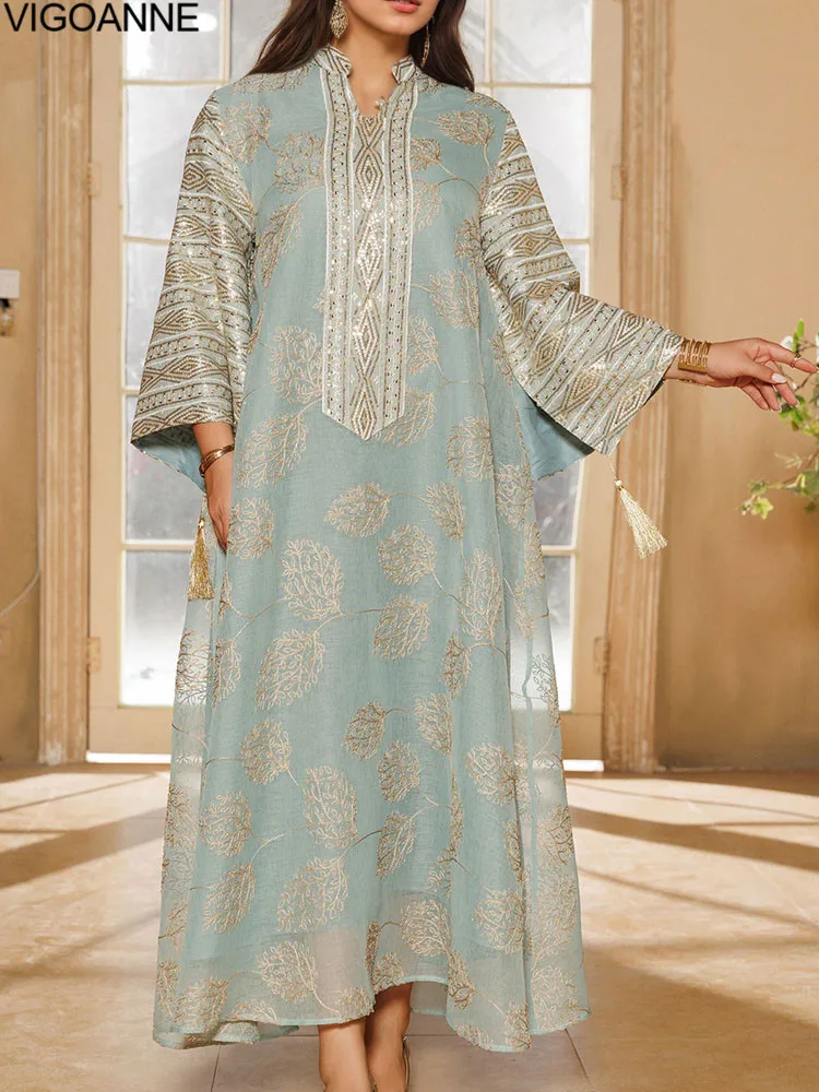 عباية إسلامية مطرزة بأوراق شجر قطعة واحدة فستان صلاة للنساء ملابس إسلامية فضفاضة للسيدات أنيقة