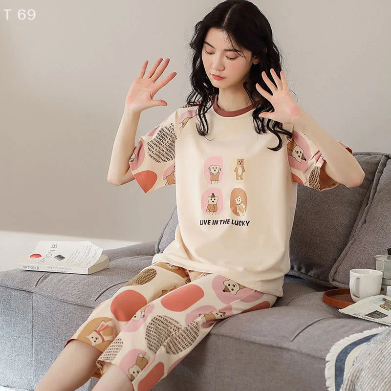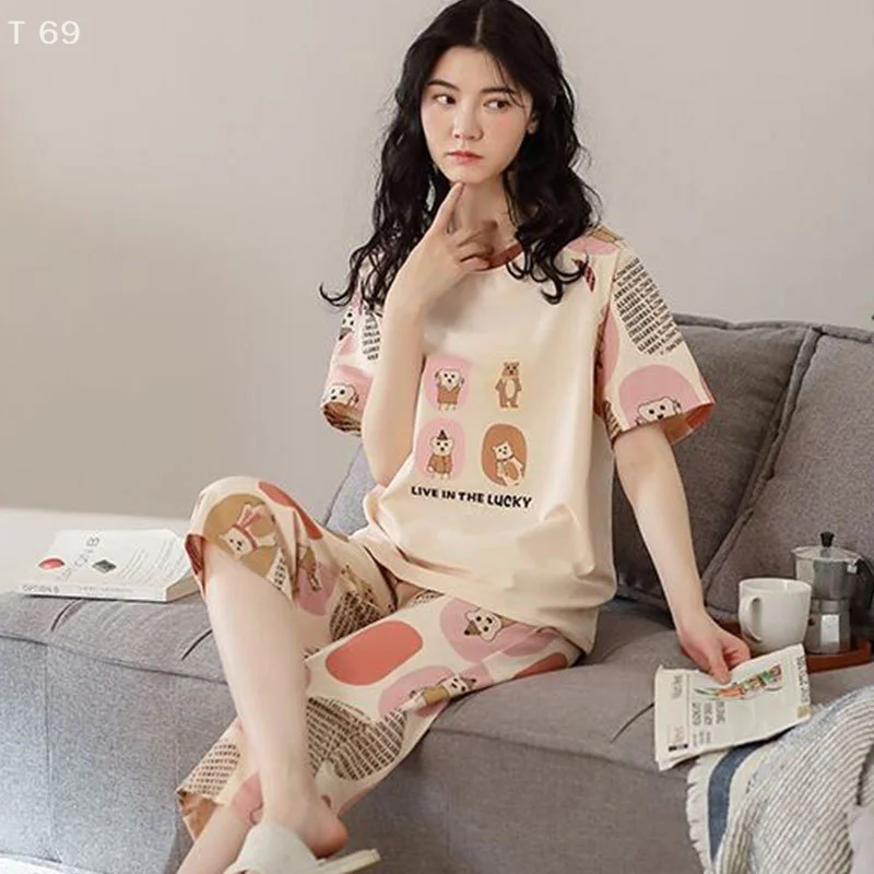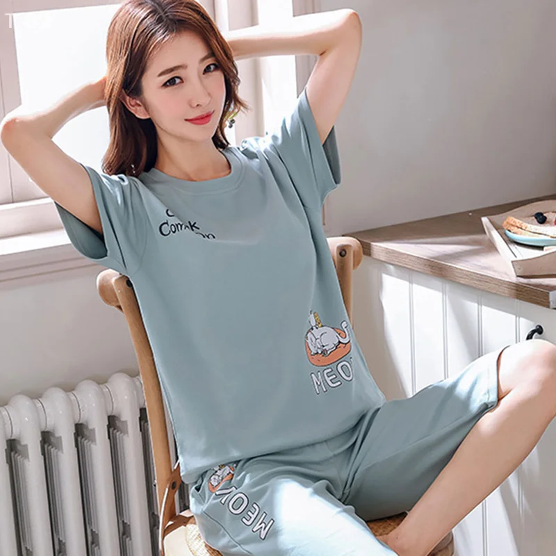 يمكن ارتداؤها خارج الصيف قصيرة الأكمام تنورة دعوى منامة المرأة عارضة رقيقة لطيف الكرتون ملابس المنزل