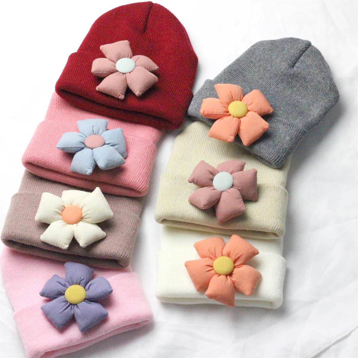 زهرة الشتاء محبوك قبعة للطفل فتاة إكسسوارات الشعر الوليد لطيف الشتاء الكروشيه قبعة مع النسيج الشمس زهرة الرضع Bonnet